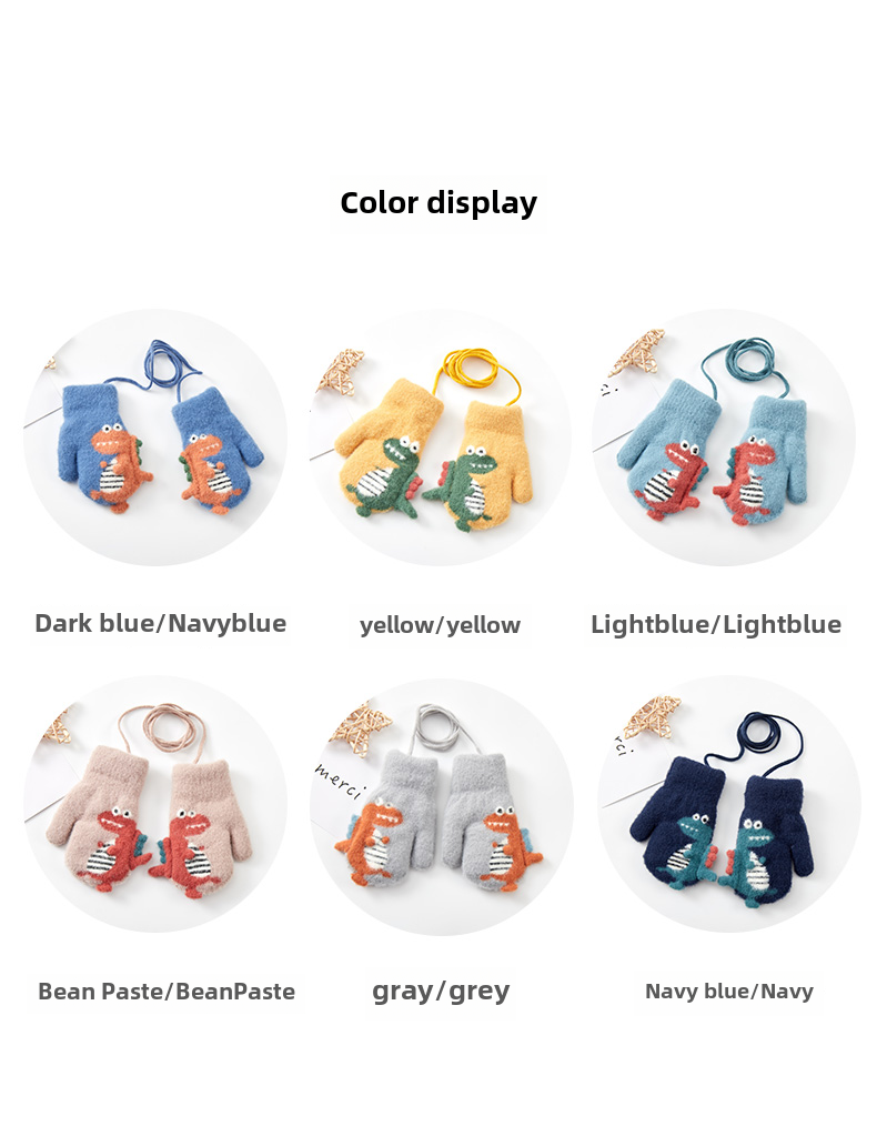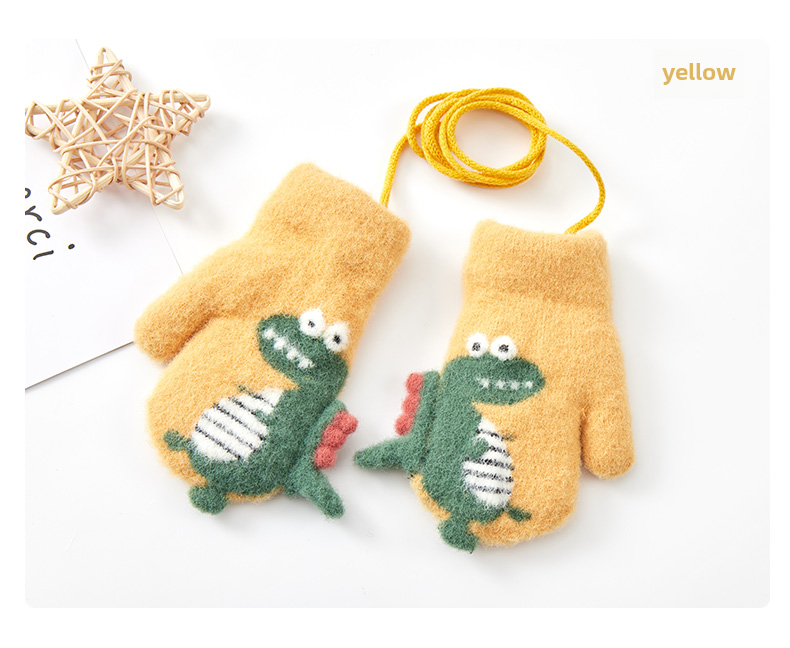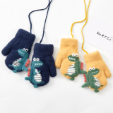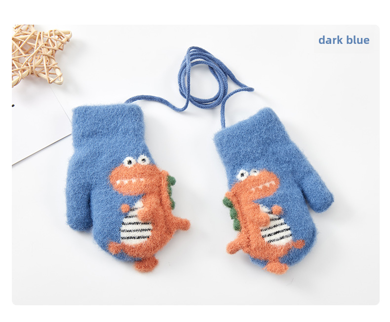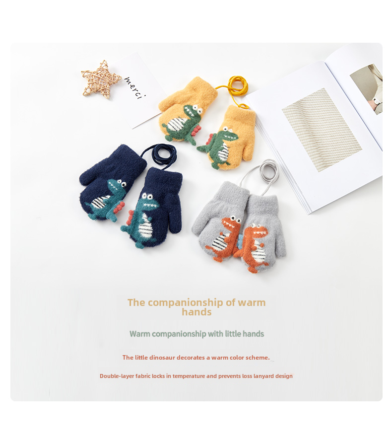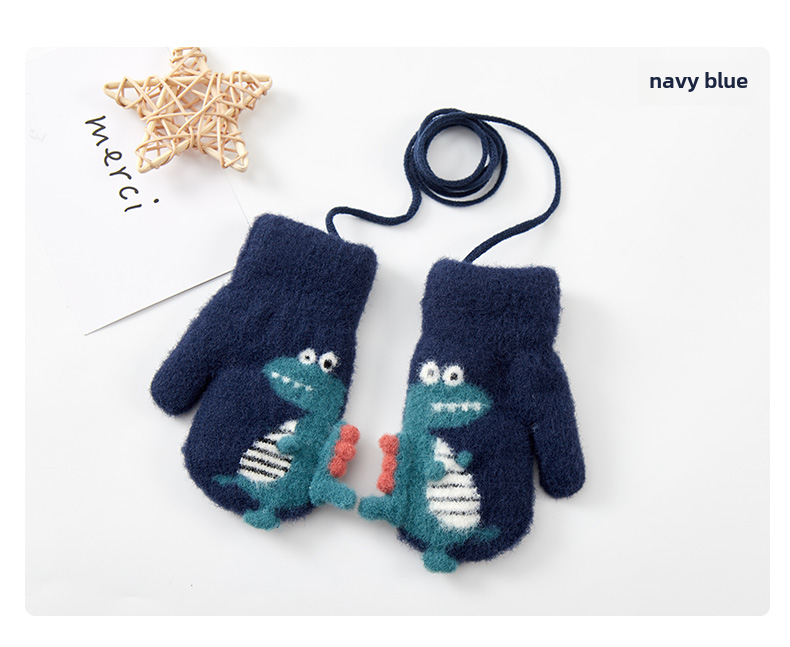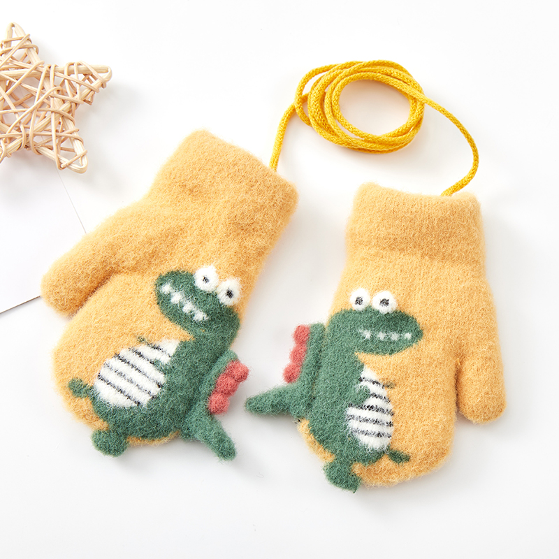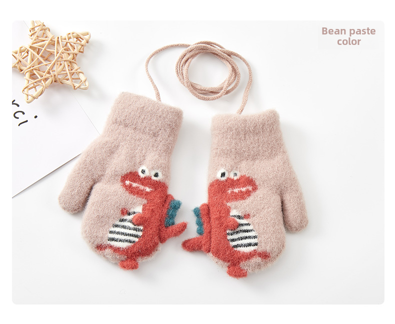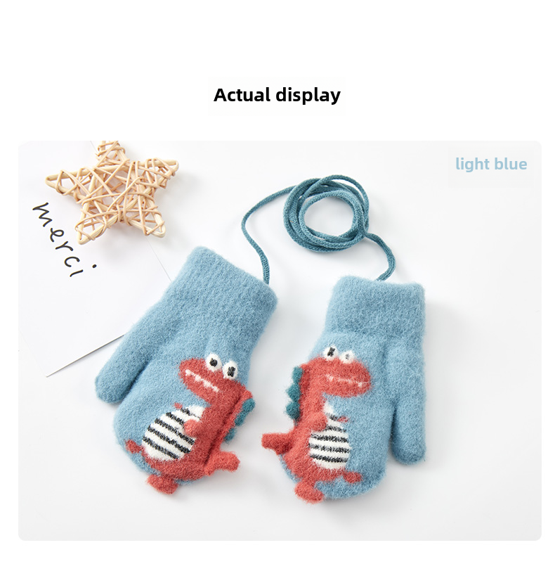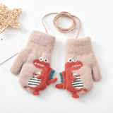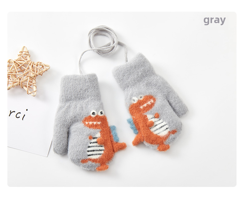 Милый детский динозавр, детские флисовые удерживающие тепло перчатки для мальчиков с веревкой