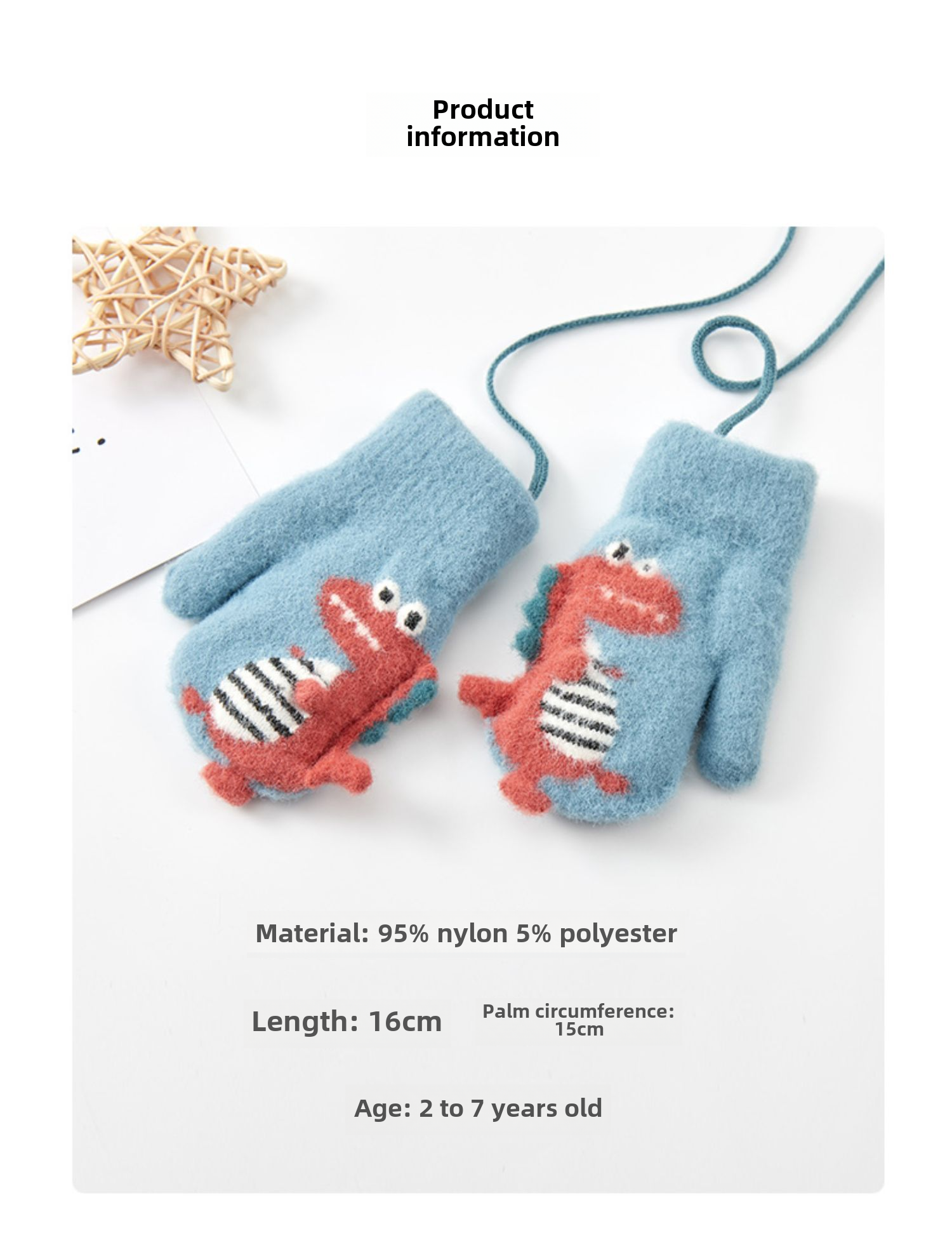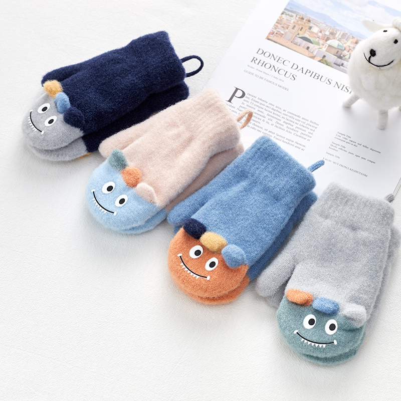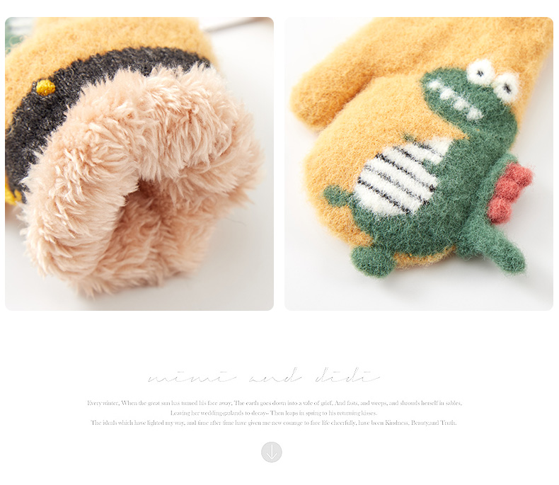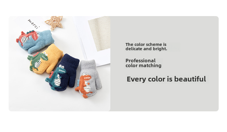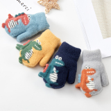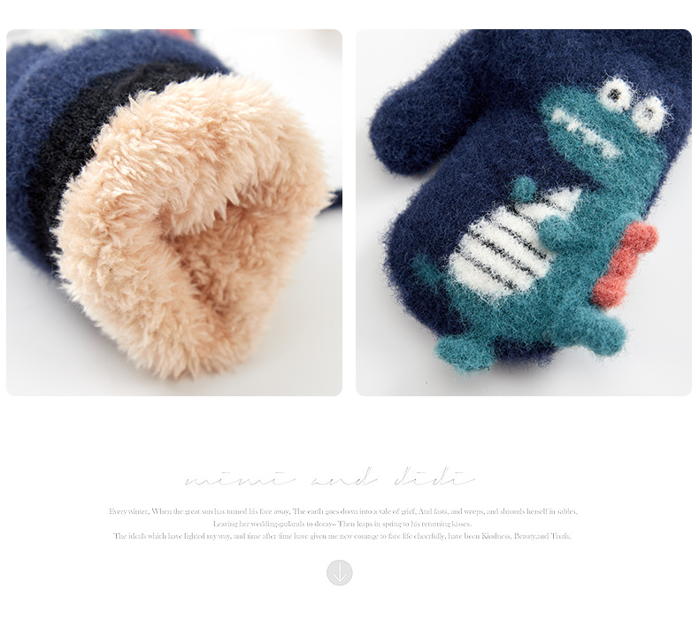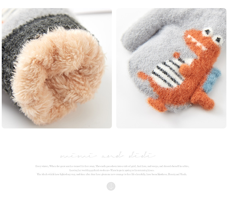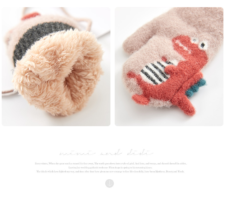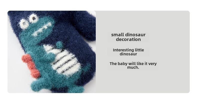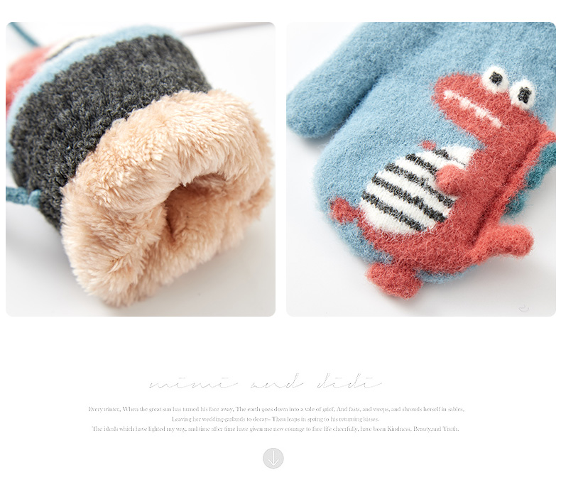 Милый детский динозавр, детские флисовые удерживающие тепло перчатки для мальчиков с веревкой