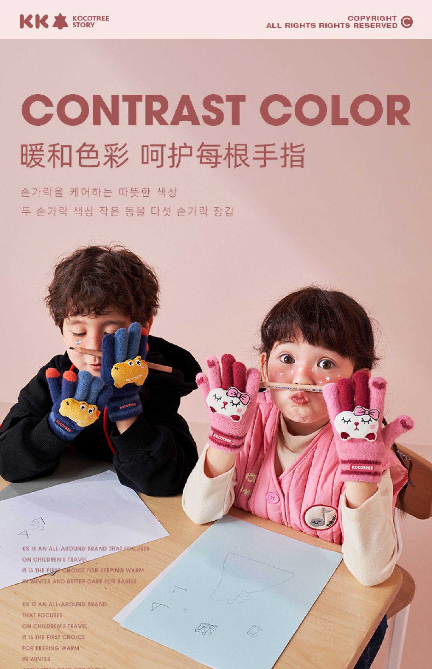 Детские демисезонные перчатки подходит для мужчин и женщин, удерживающая тепло детская трикотажная мультяшная милая словарная карточка для школьников и студентов для письма