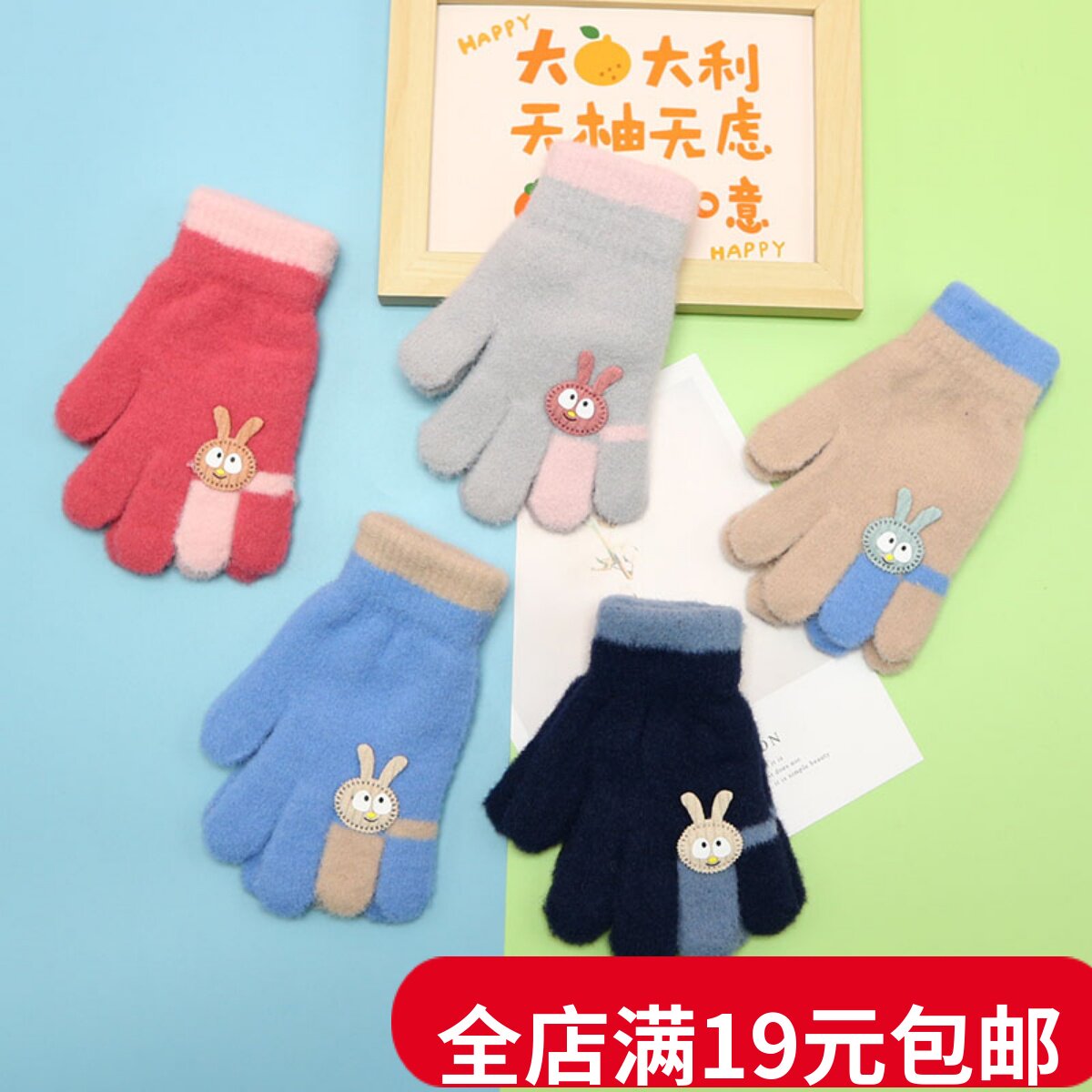 Детский кролик, дорожные удерживающие тепло трикотажные зимние детские перчатки для мальчиков, в корейском стиле