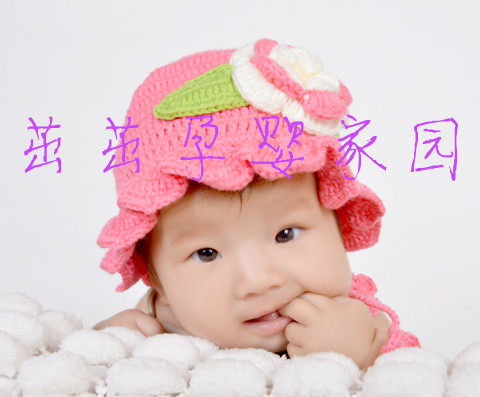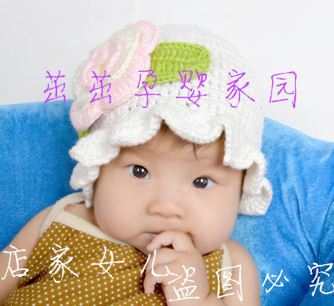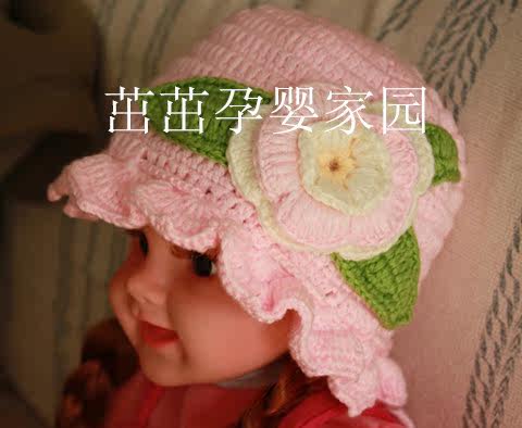 Осенняя плетеная детская шерстяная шапка для принцессы, в цветочек