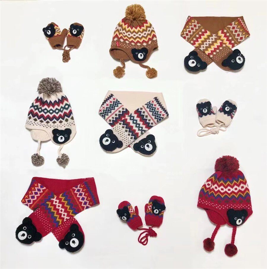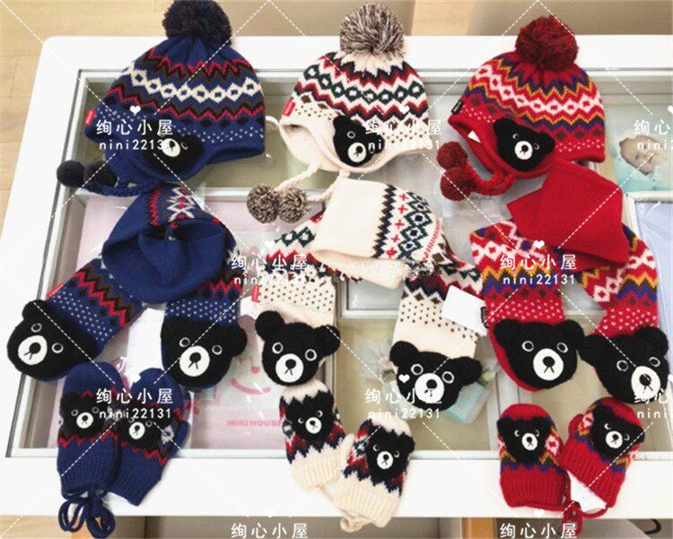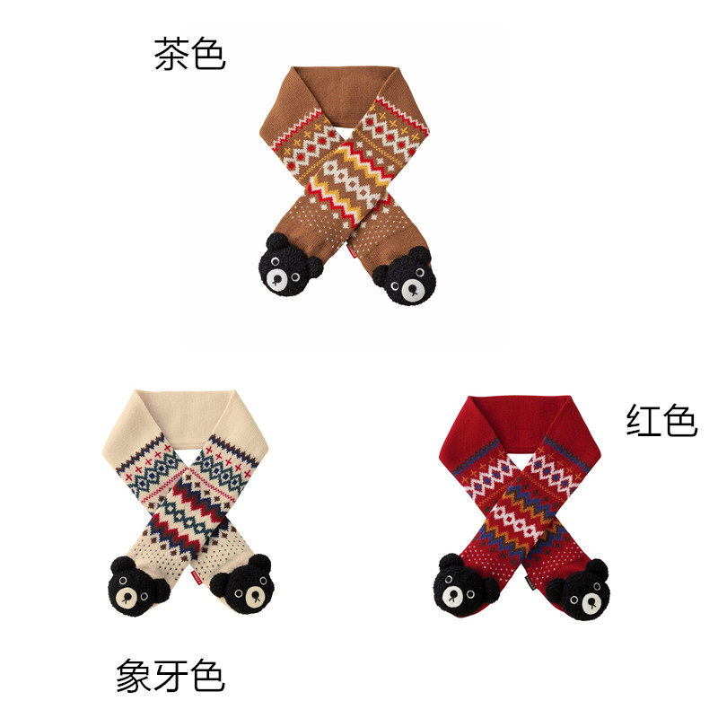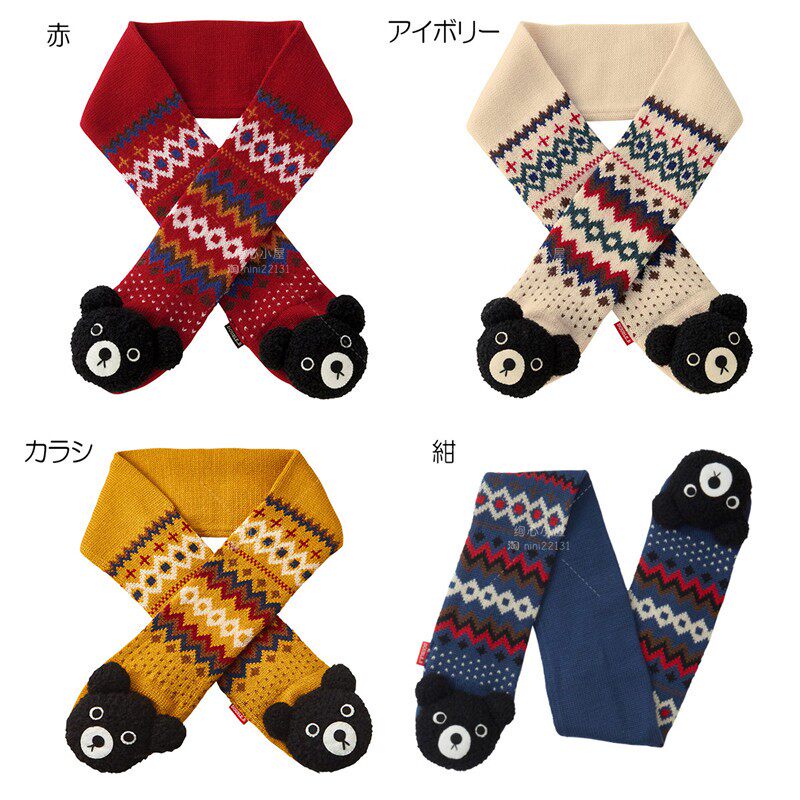 Новая страна в настоящее время покупает Mikihouse Black Bear Geometric Pattern вязание шарф 63-7702-975