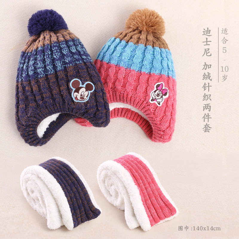 Дисней, детская шапка, шарф, зимний удерживающий тепло трикотажный детский шерстяной комплект для мальчиков, защита для ушей