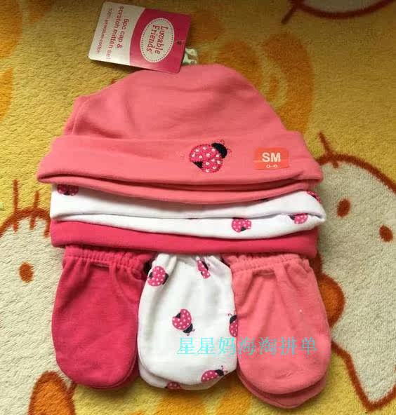 Детская хлопковая шапка для новорожденных, перчатки, (в наличии на складе), США