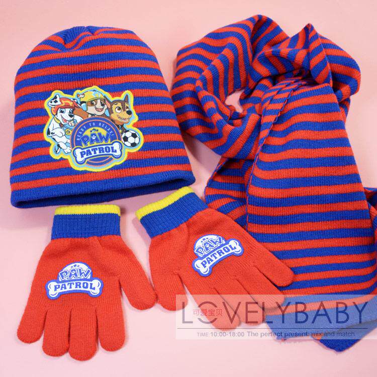 Флисовая шапка для мальчиков, шарф, перчатки, детский трикотажный демисезонный комплект, 3 предмета