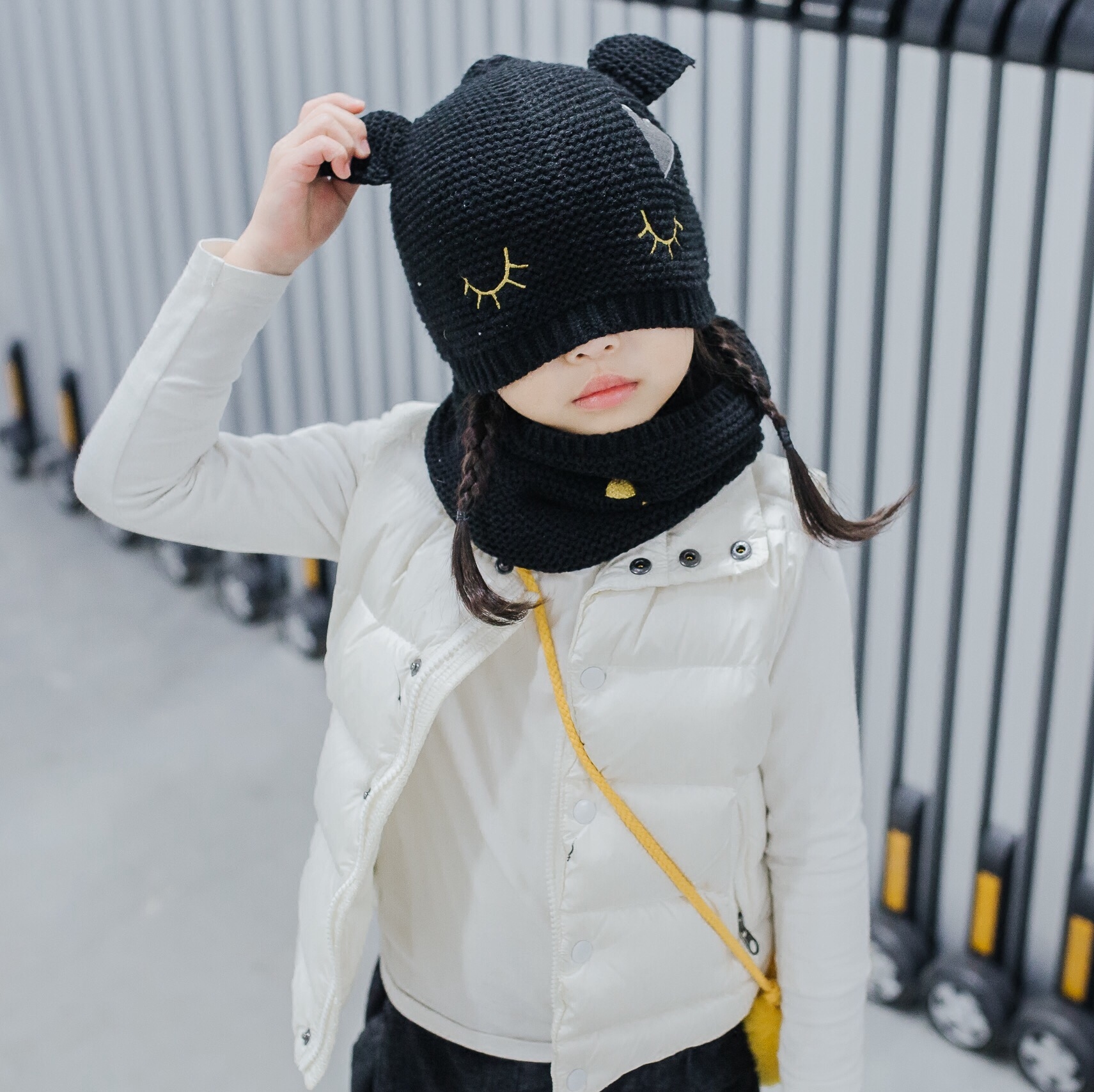 Шапка, шарф, детский зимний милый универсальный комплект