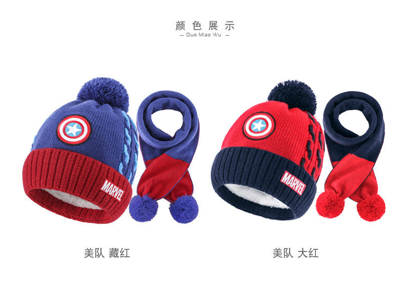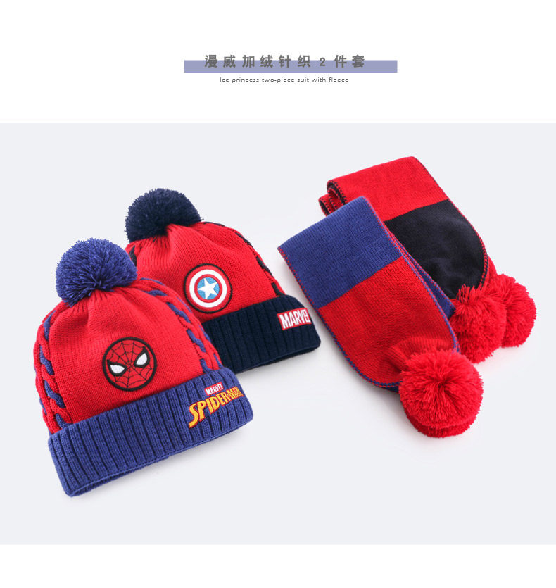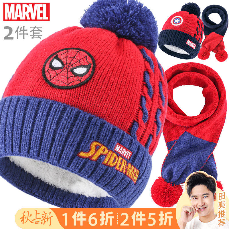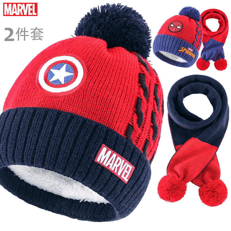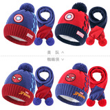 Дисней, детская шапка, шарф, утепленный трикотажный шерстяной детский комплект для мальчиков