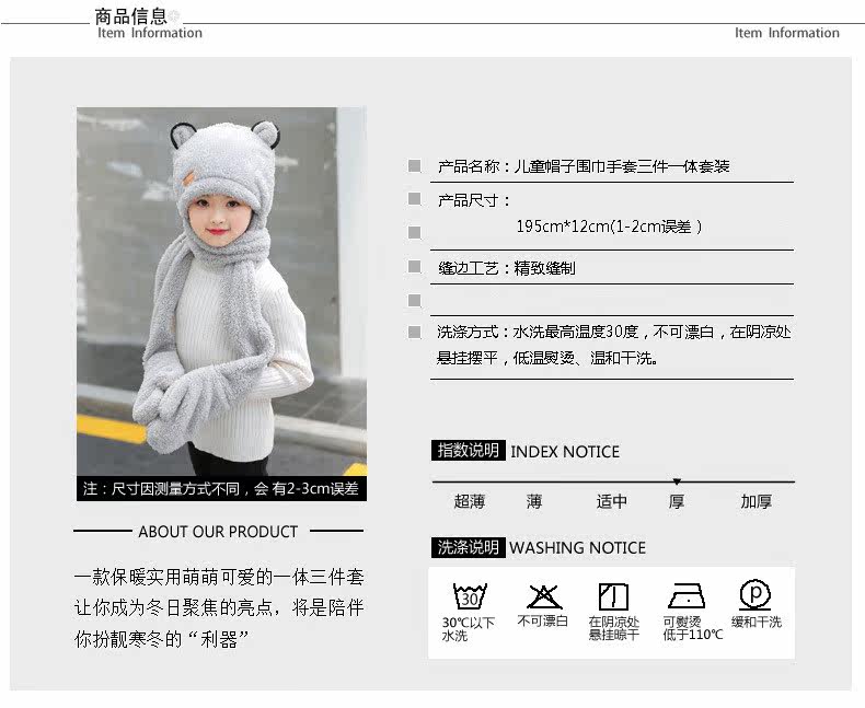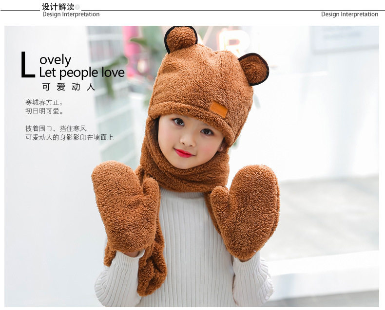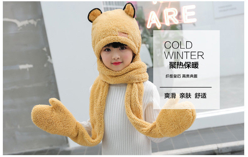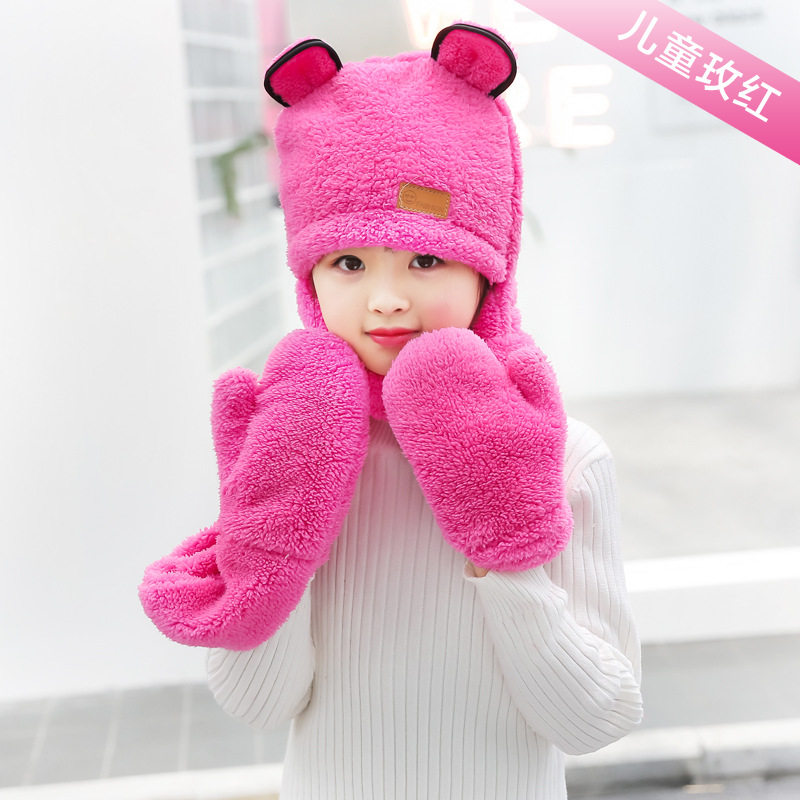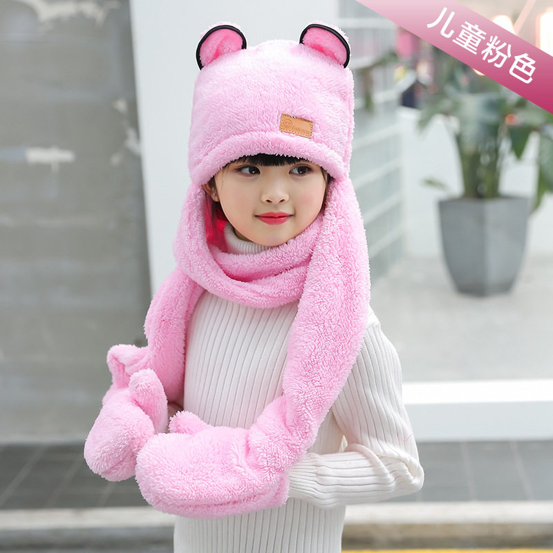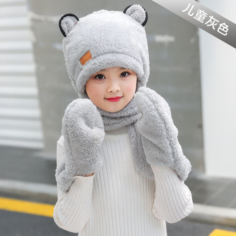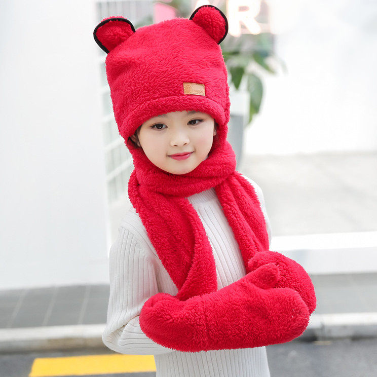 Зимняя детская шапка, шарф, утепленные удерживающие тепло детские перчатки для мальчиков и девочек, «три в одном»