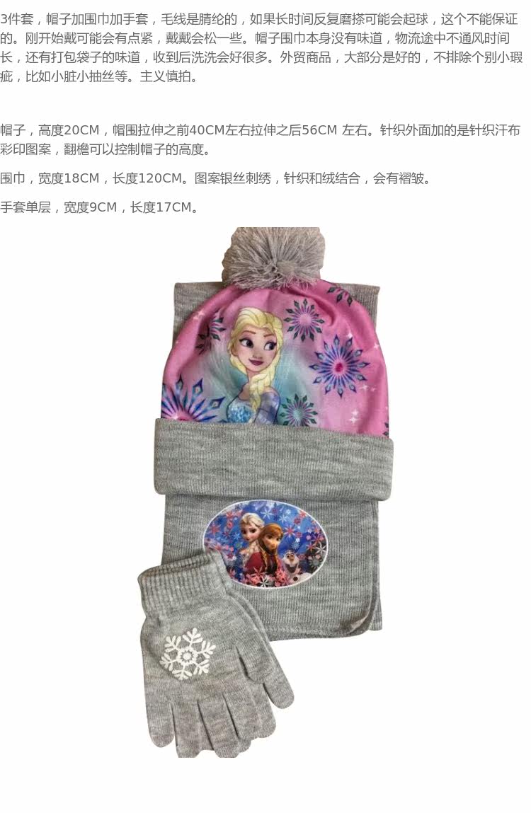Шапка, комплект, трикотажный шарф, перчатки, 4-12 лет, 3 шт, «Холодное сердце», 3 предмета