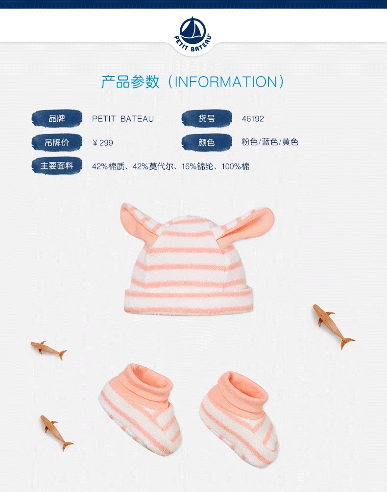 Zone-PetitBateau Маленькая парусная лодка мягкая кожа детская шляпа набор 46192