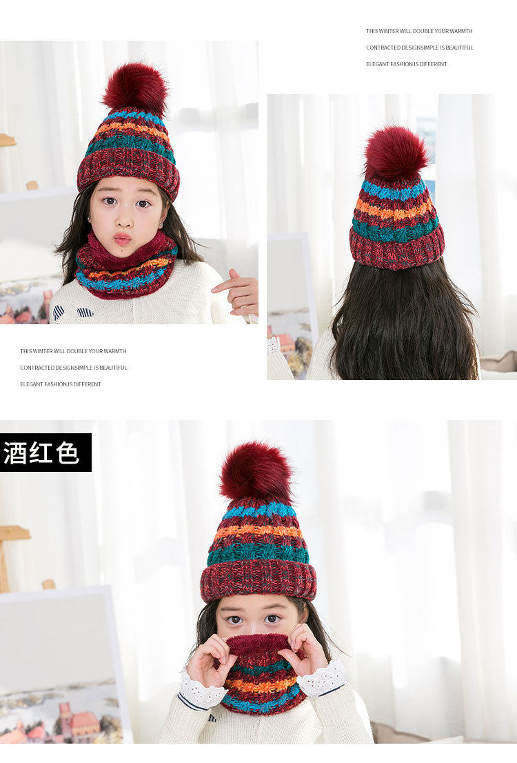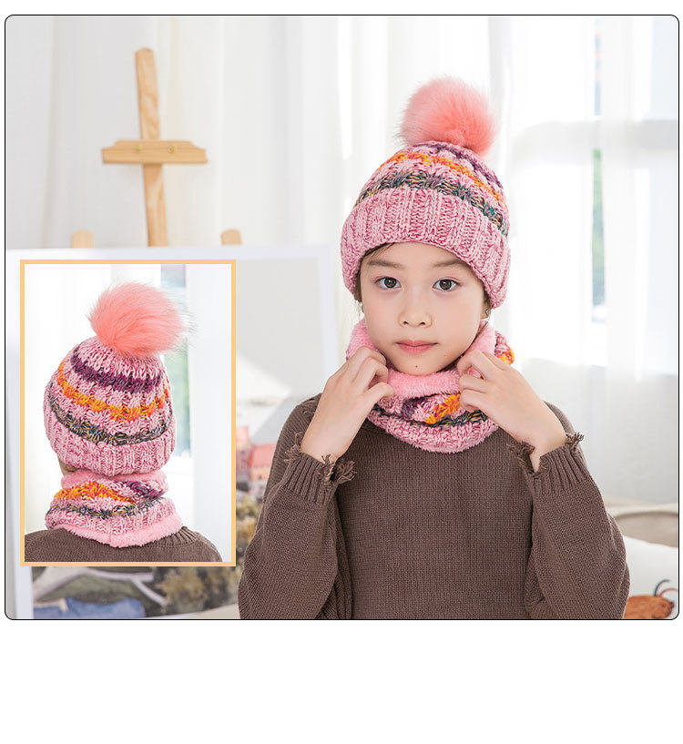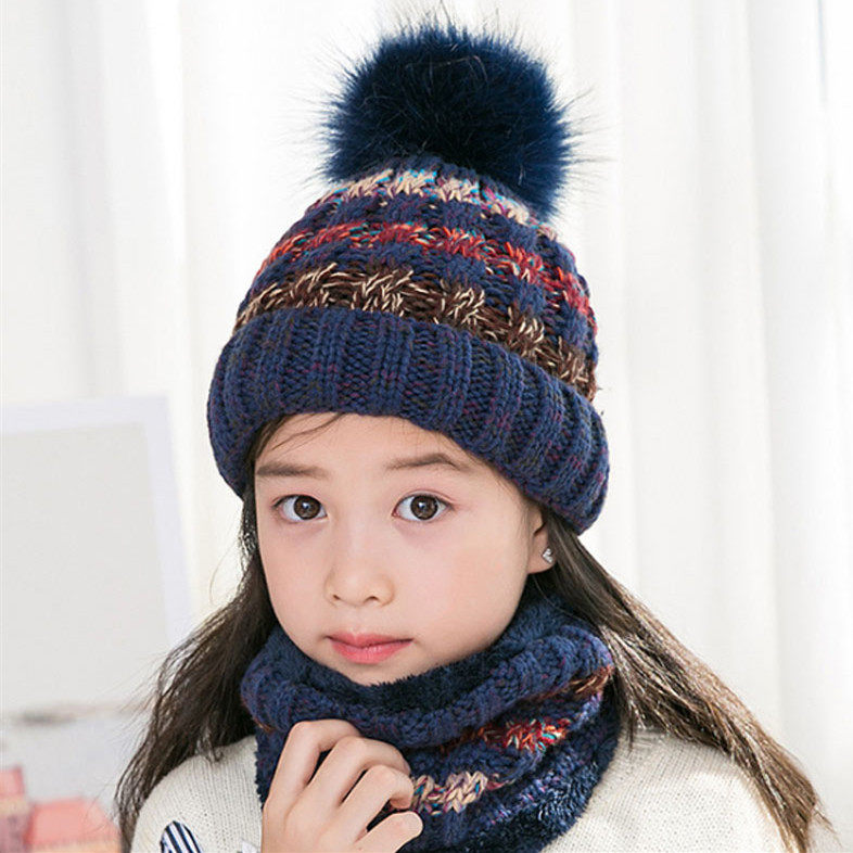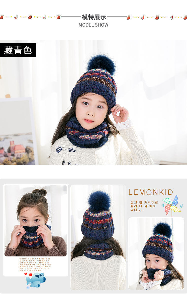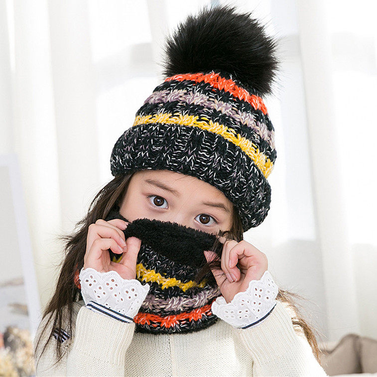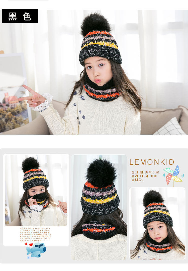 Демисезонная детская шапка, шарф, милый шерстяной утепленный комплект, в корейском стиле