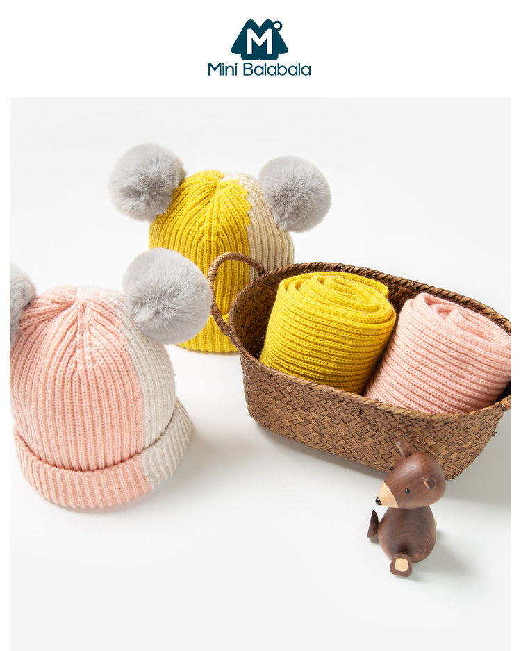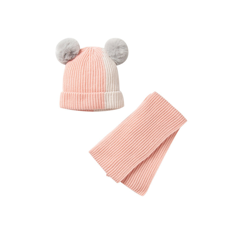 Маленький детский шарф, зимний комплект, милая вязаная шапка