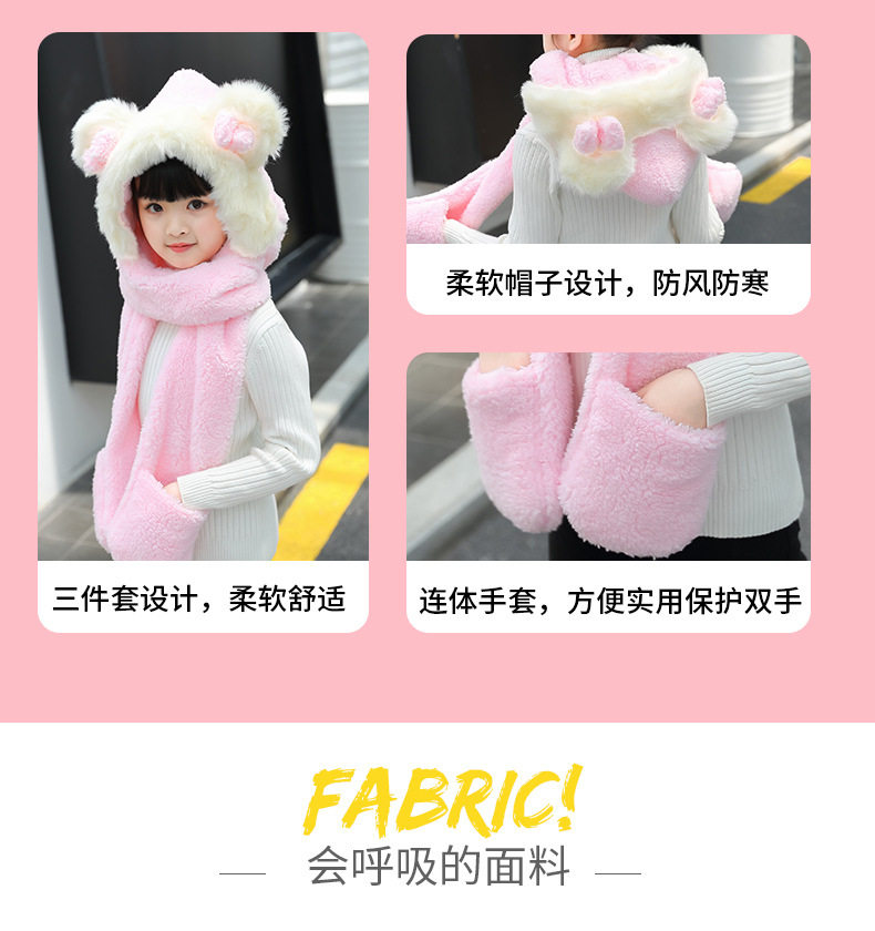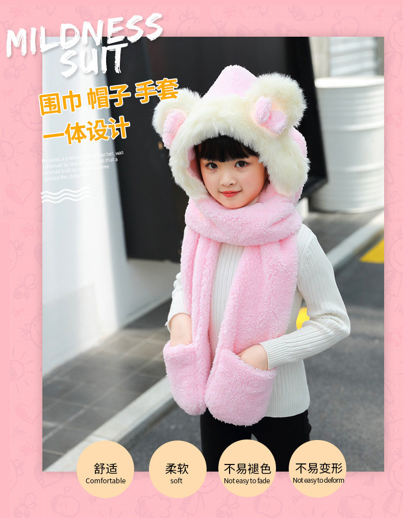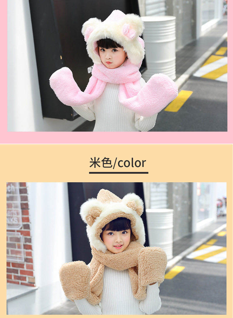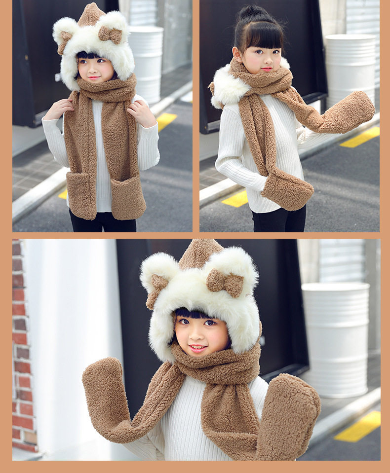 Мультяшный ретро демисезонный утепленный удерживающий тепло детский шарф, шапка, перчатки с бантиком, комплект, 3 предмета