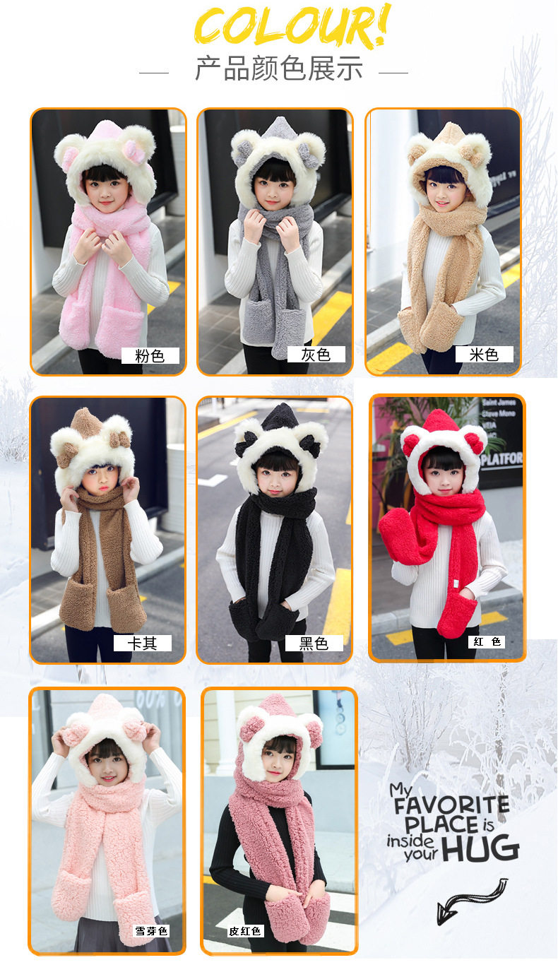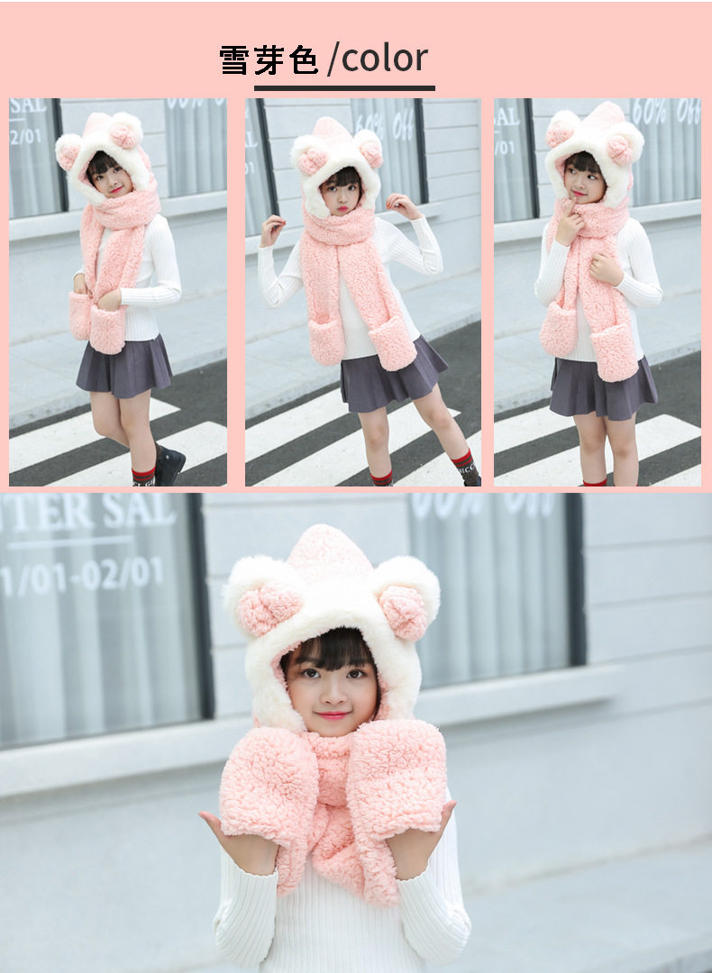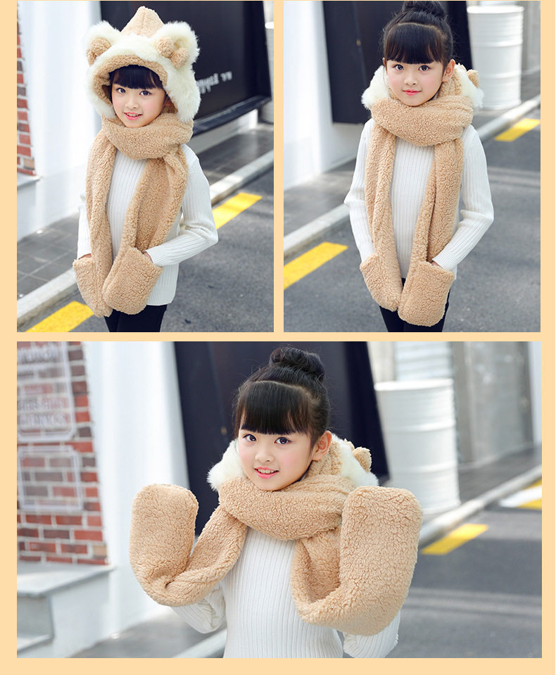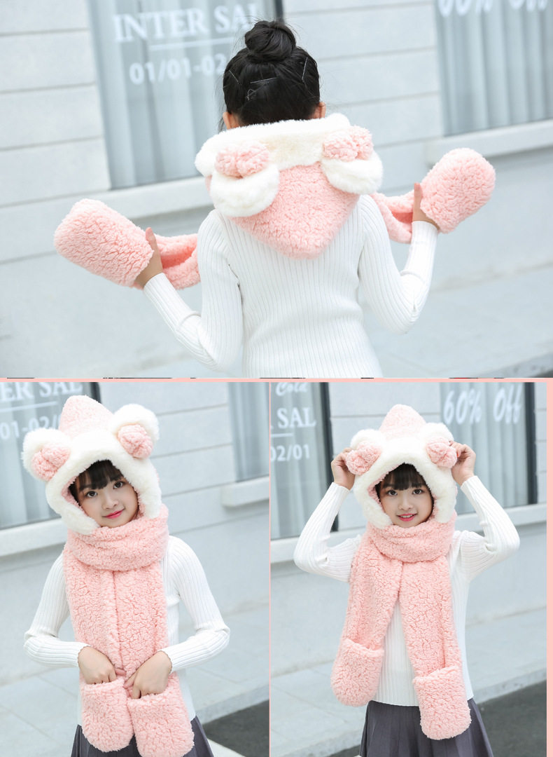 Мультяшный ретро демисезонный утепленный удерживающий тепло детский шарф, шапка, перчатки с бантиком, комплект, 3 предмета