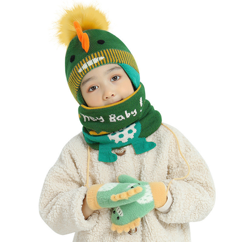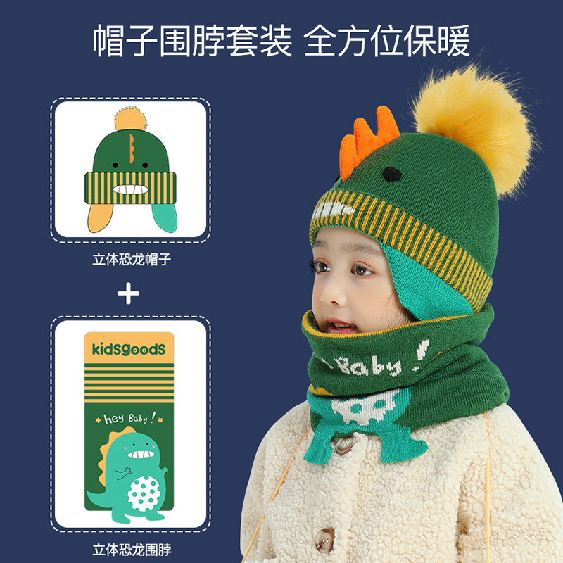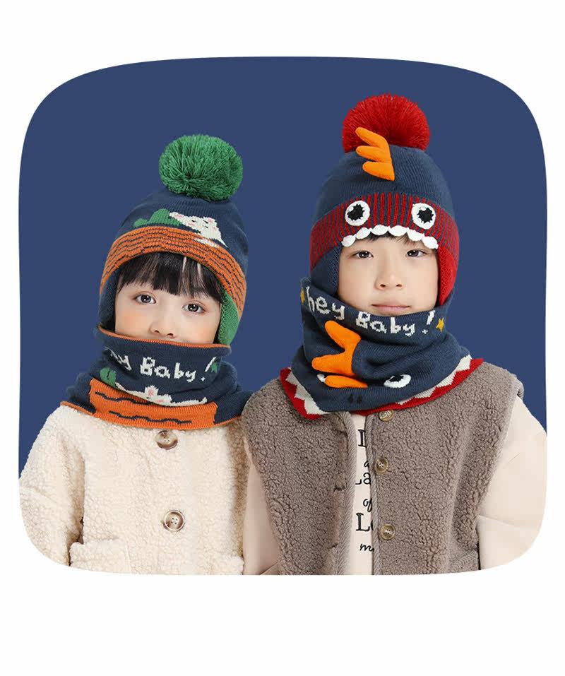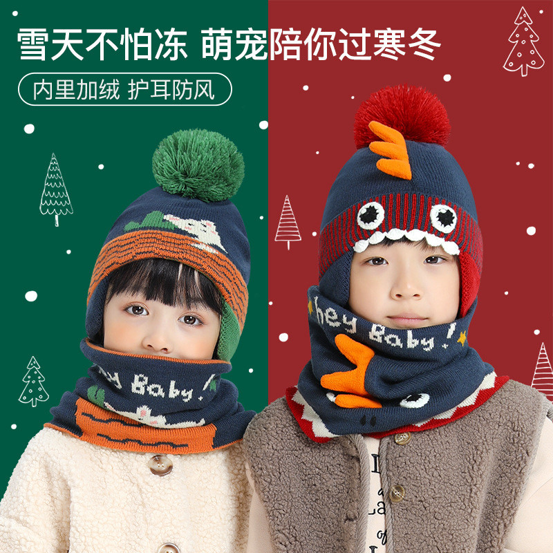 Детская шапка, демисезонный мультяшный милый детский шарф, ветрозащитный удерживающий тепло утепленный комплект