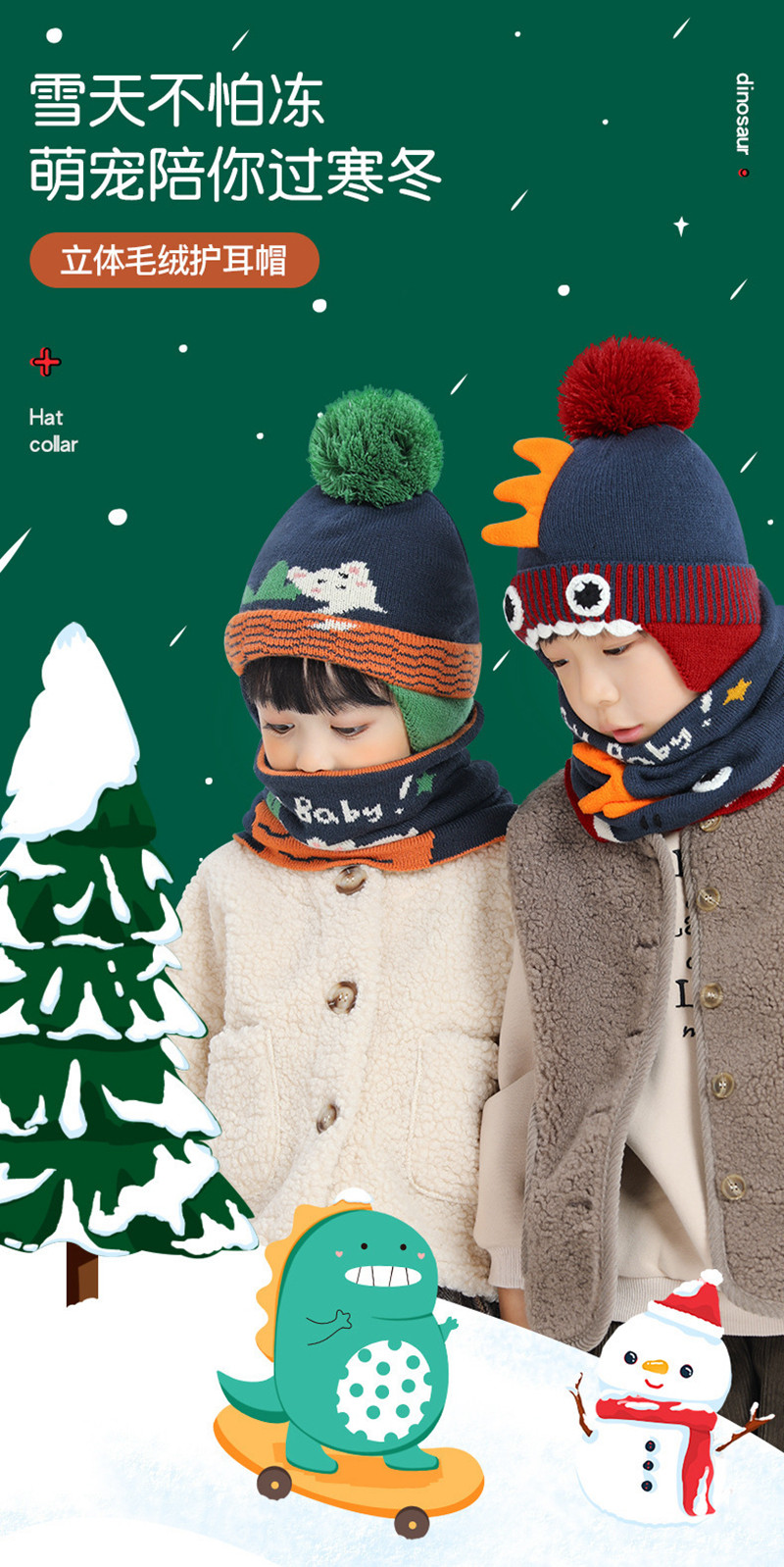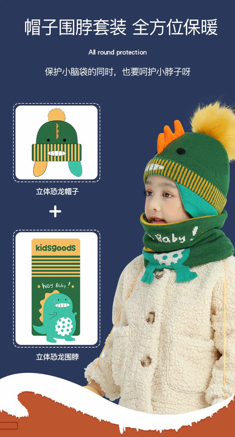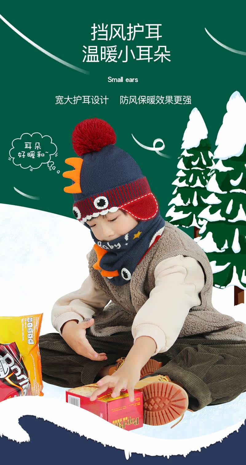 Детская шапка, демисезонный мультяшный милый детский шарф, ветрозащитный удерживающий тепло утепленный комплект
