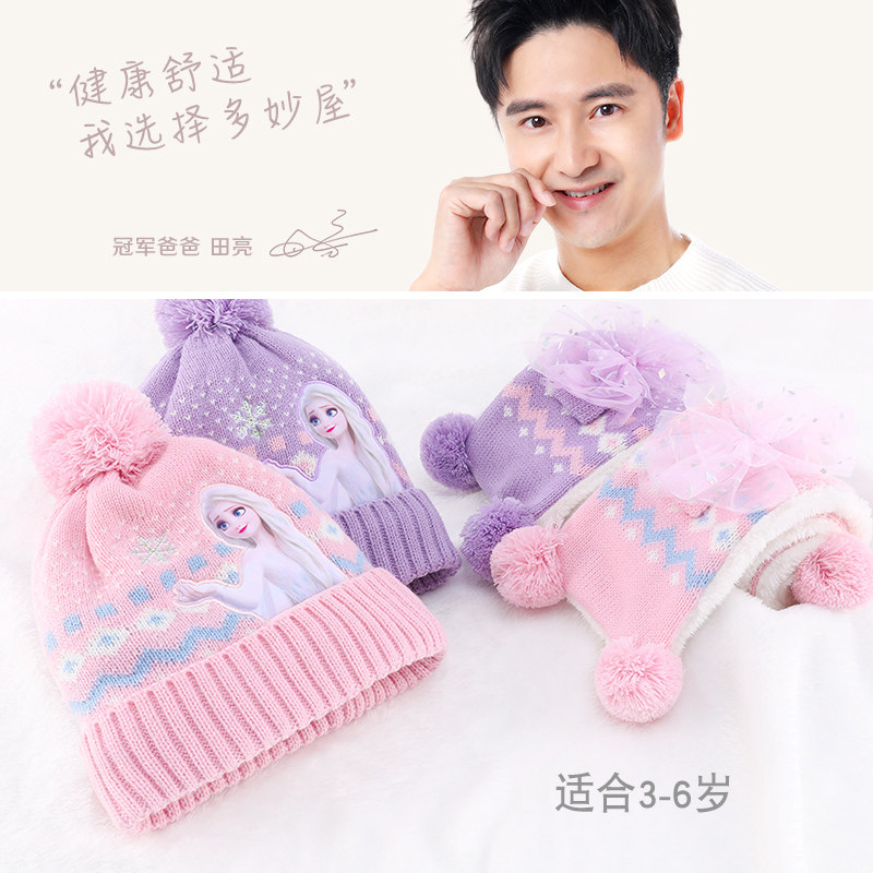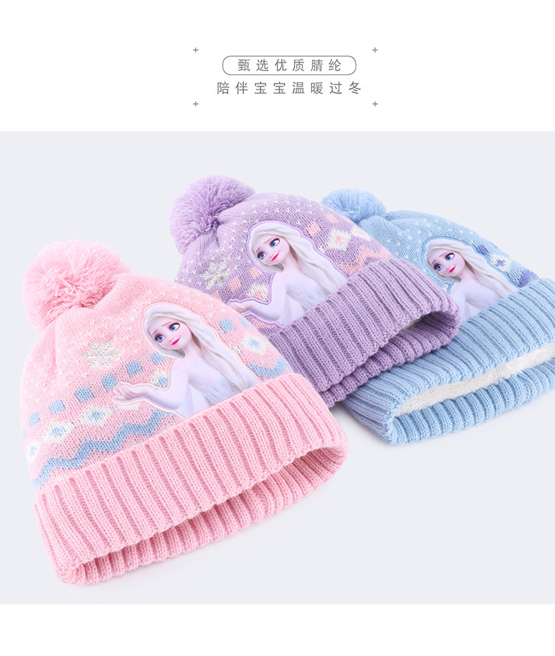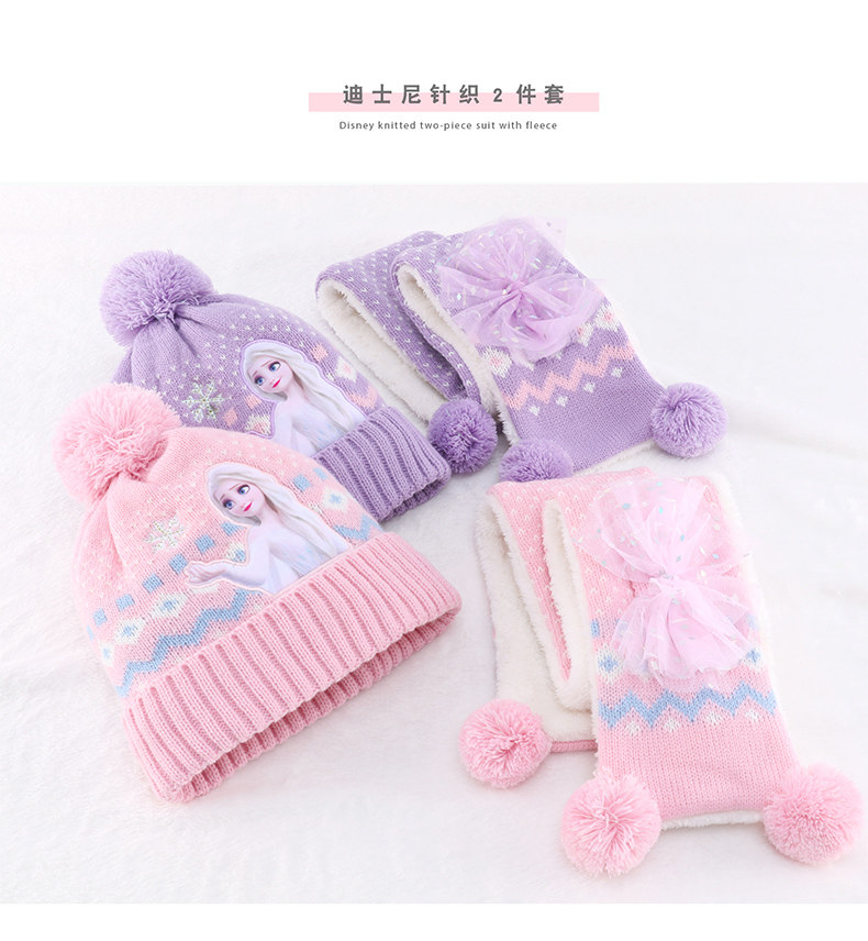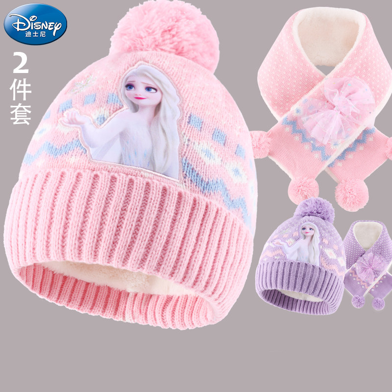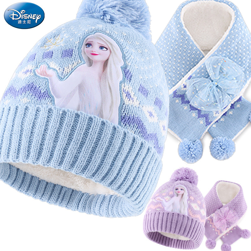 Дисней, детская шапка, шарф, зимний трикотажный удерживающий тепло детский шерстяной комплект для принцессы для раннего возраста