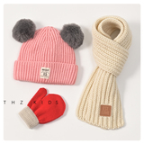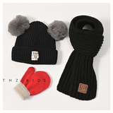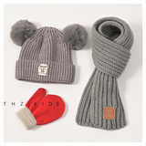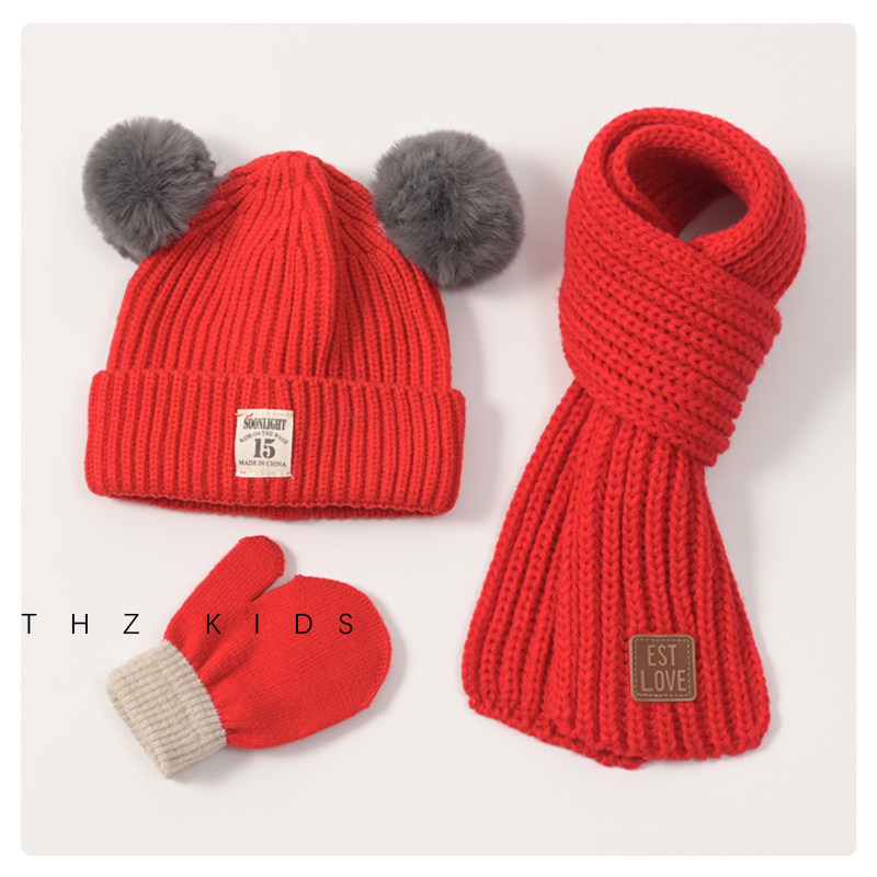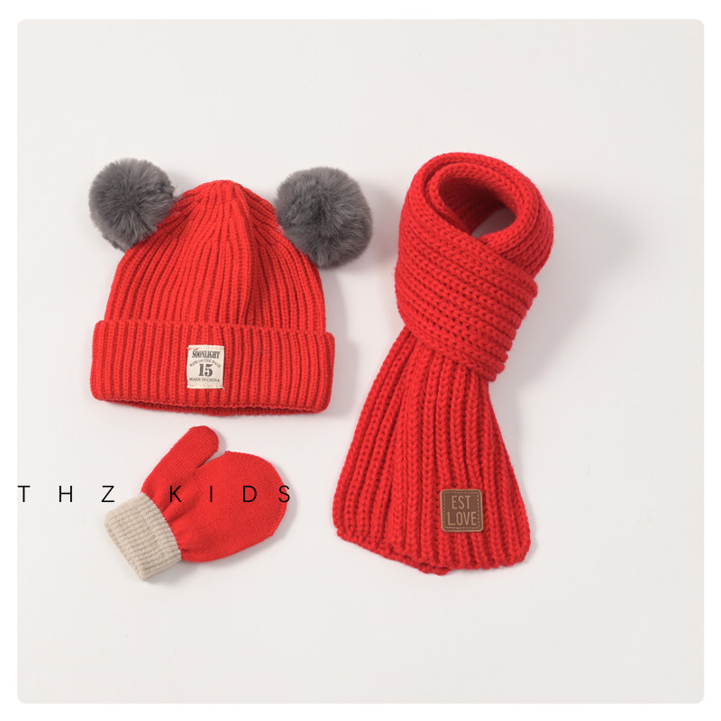 Демисезонный комплект, детская шапка, шарф, детские утепленные трикотажные шерстяные перчатки подходит для мужчин и женщин, 3 предмета