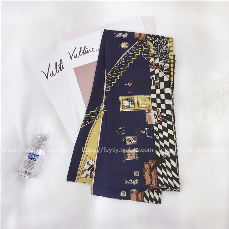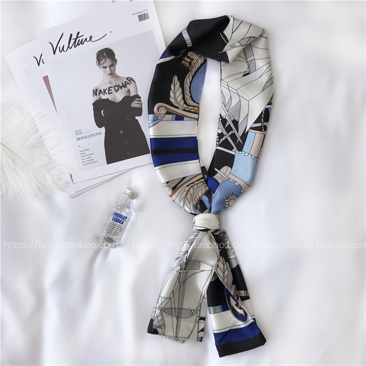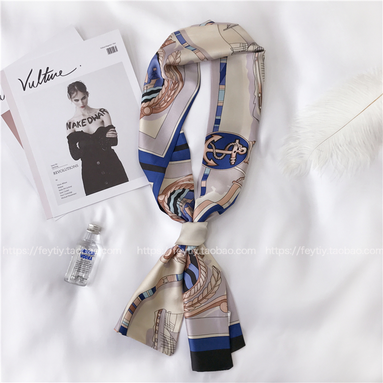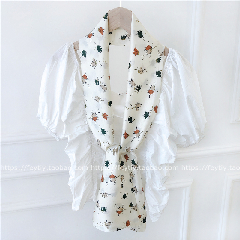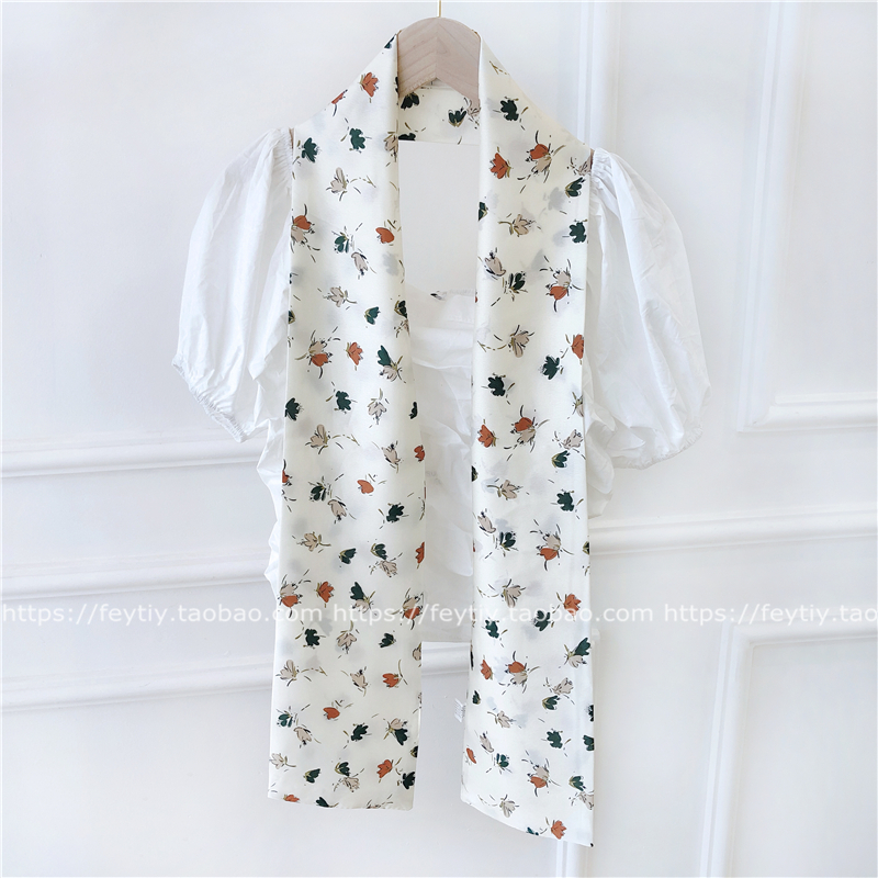 Ретро универсальный длинный шарф, костюм, шейный платок, в корейском стиле, цветочный принт, защита от солнца