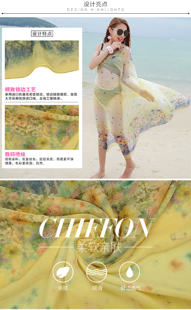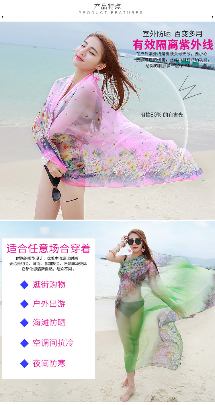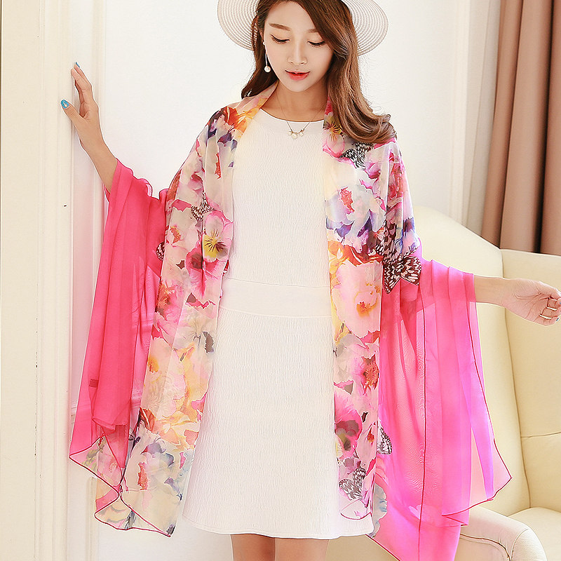 Весенняя длинная универсальная летняя накидка, пляжный шифоновый шарф, городской стиль, защита от солнца, в корейском стиле
