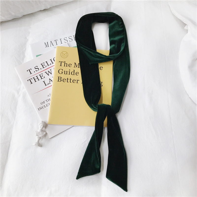 Европейский и американский стиль худые шарф -шарф шелковой шарф, развевающийся ретро -модный бархатный бархатный шарф самка