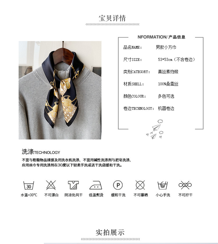 Мужской трендовый шарф, шелковый осенний тонкий носовой платок, модная универсальная рубашка, в западном стиле
