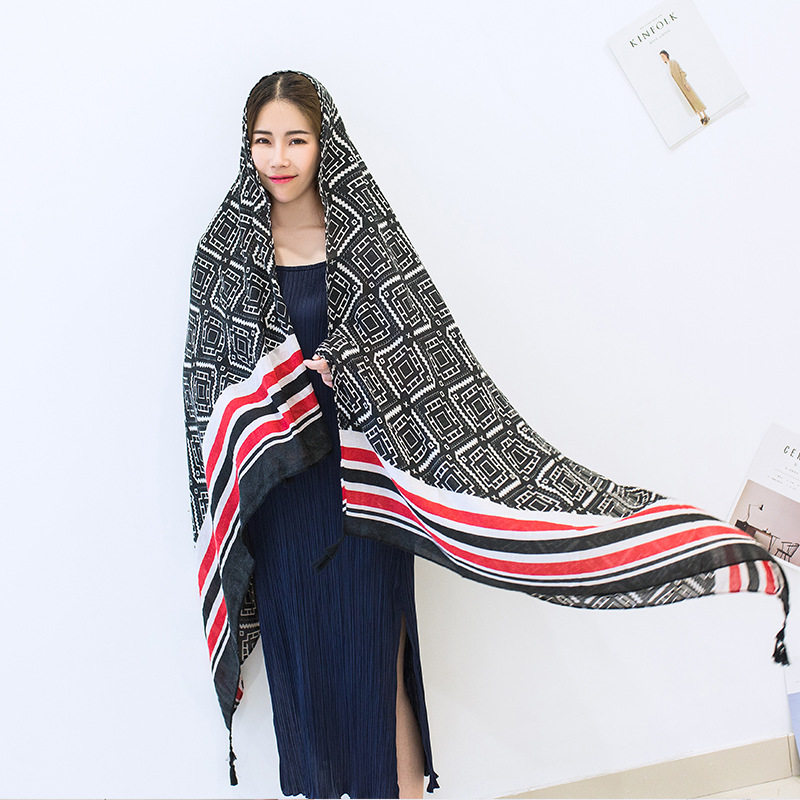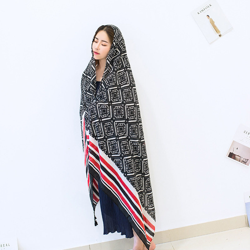 Большой этнический геометричный шарф, мягкая легкая и тонкая пляжная накидка, этнический стиль, защита от солнца