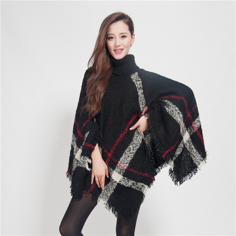 Демисезонный оригинальный дизайнерский классический многоцветный цветной большой трикотажный свитер, плащ, накидка