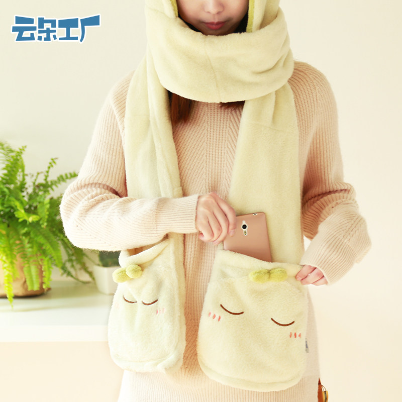 云朵工厂 Милый удерживающий тепло флисовый шарф, шапка