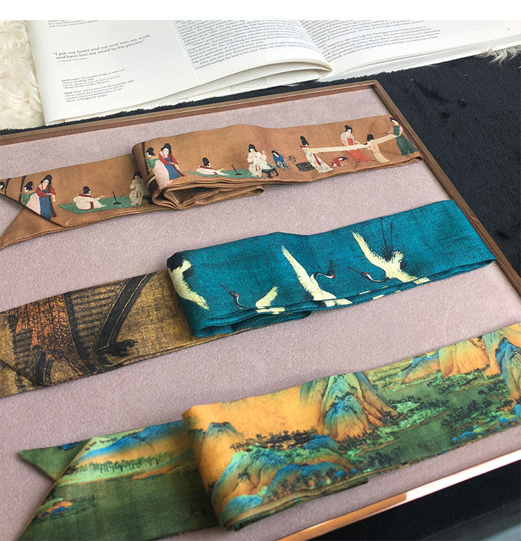 песня Huizong Rui Crane Map лента Узкий шелковый шарф длинные волосы длинные волосы с культурным и креативным китайским шелковым шарфом