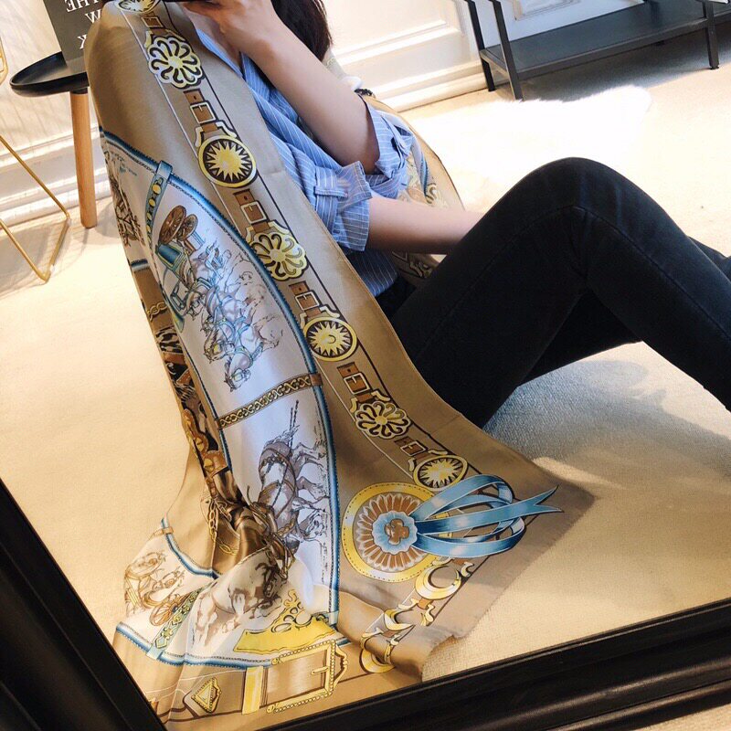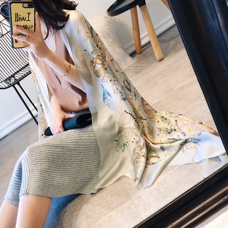 2025 Новая летняя шаль для женщин, Сучжоу и Ханчжоу Шелковый шарф Корейская версия, универсальная приморская двойная солнцезащитная пляжная шарф