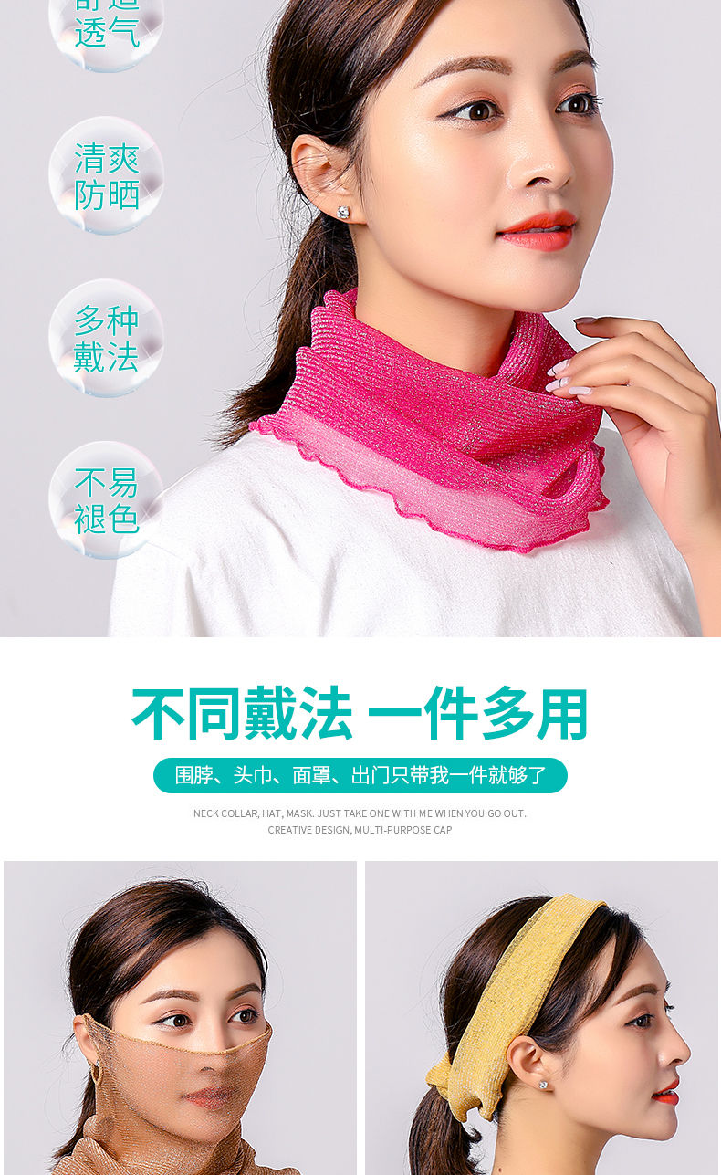 Тонкий универсальный шарф, шарф-платок, защита от солнца, с защитой шеи