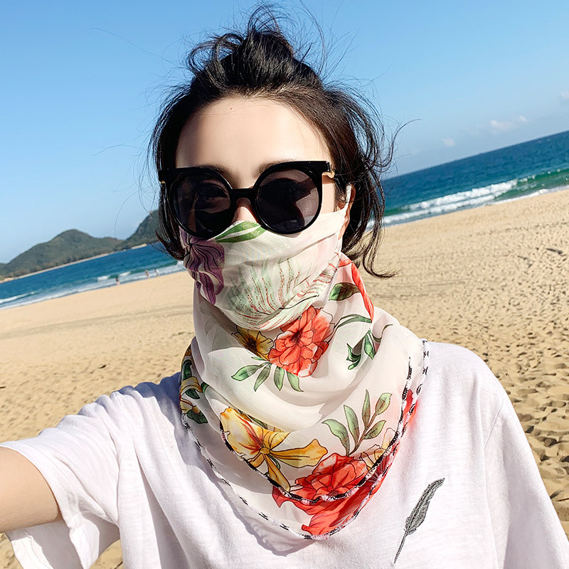 Маска, шелковая вуаль, летний тонкий дорожный шарф, защита от солнца, УФ-защита