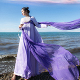 Шифоновая летняя накидка, ретро длинный тонкий плащ, шарф, из хлопка и льна