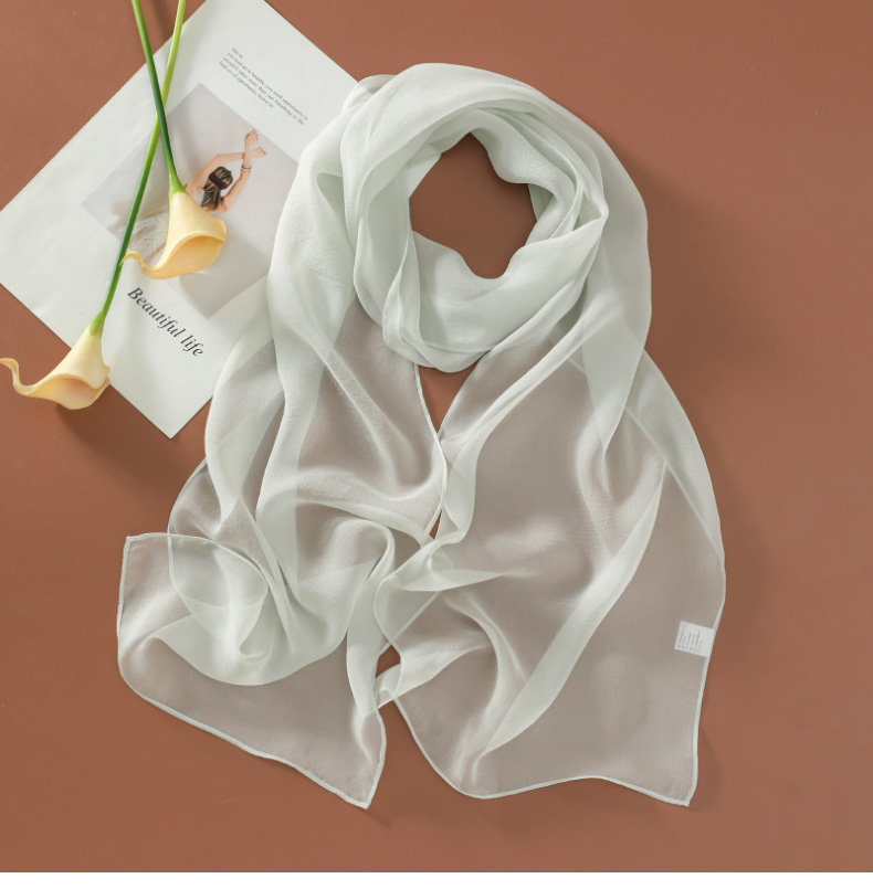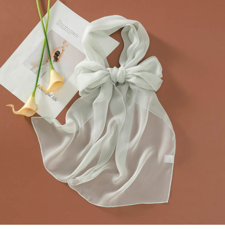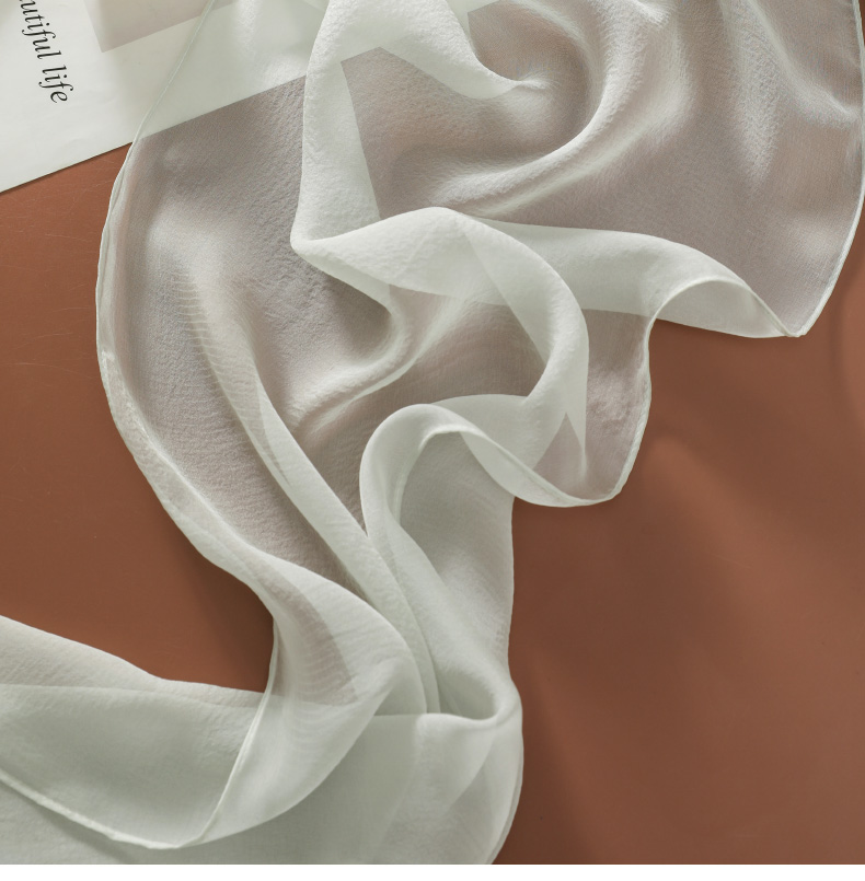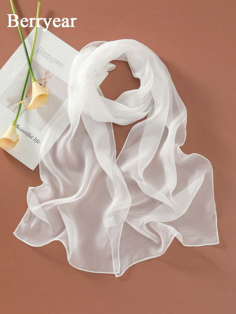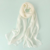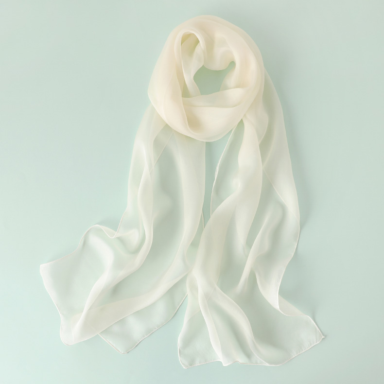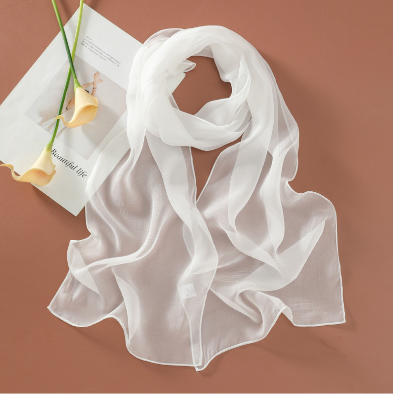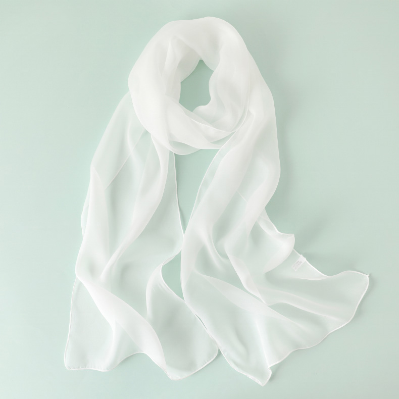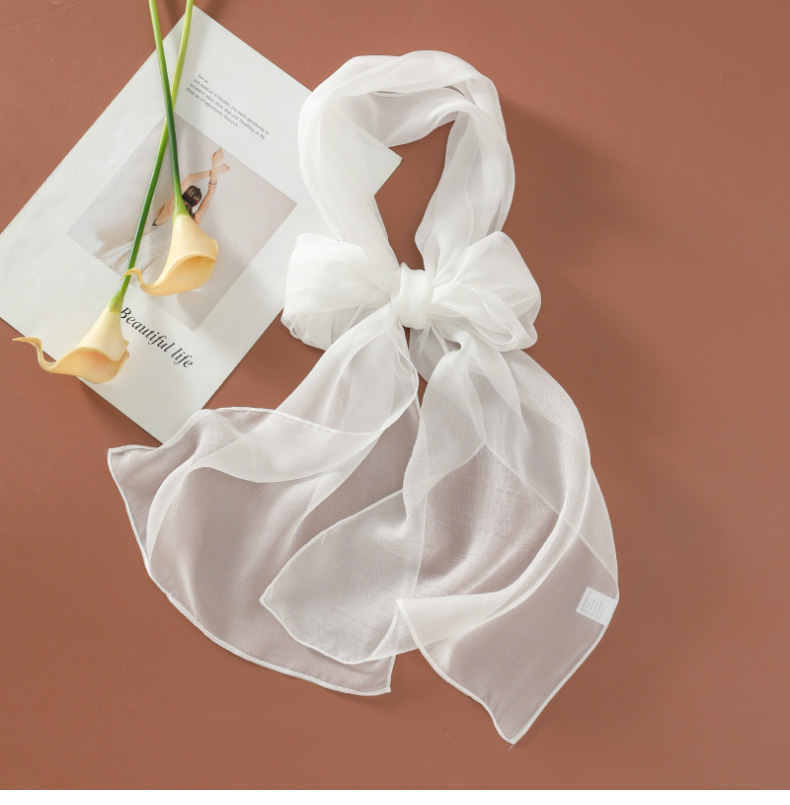 Шелковый летний универсальный тонкий белый шарф, с защитой шеи