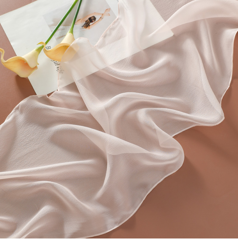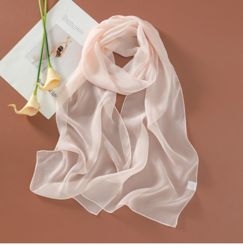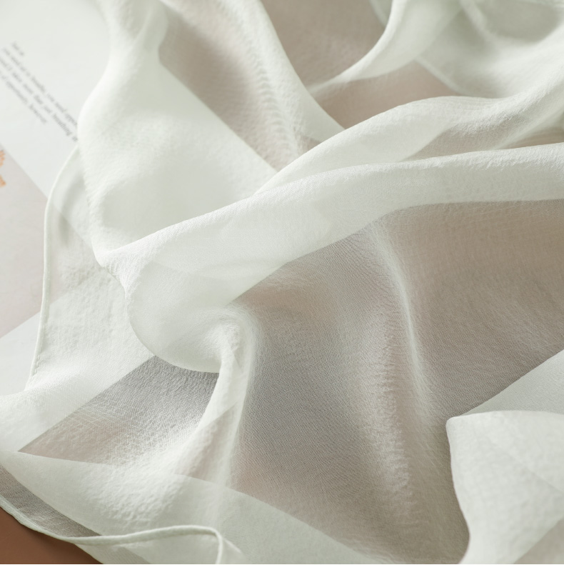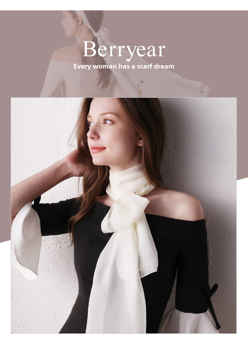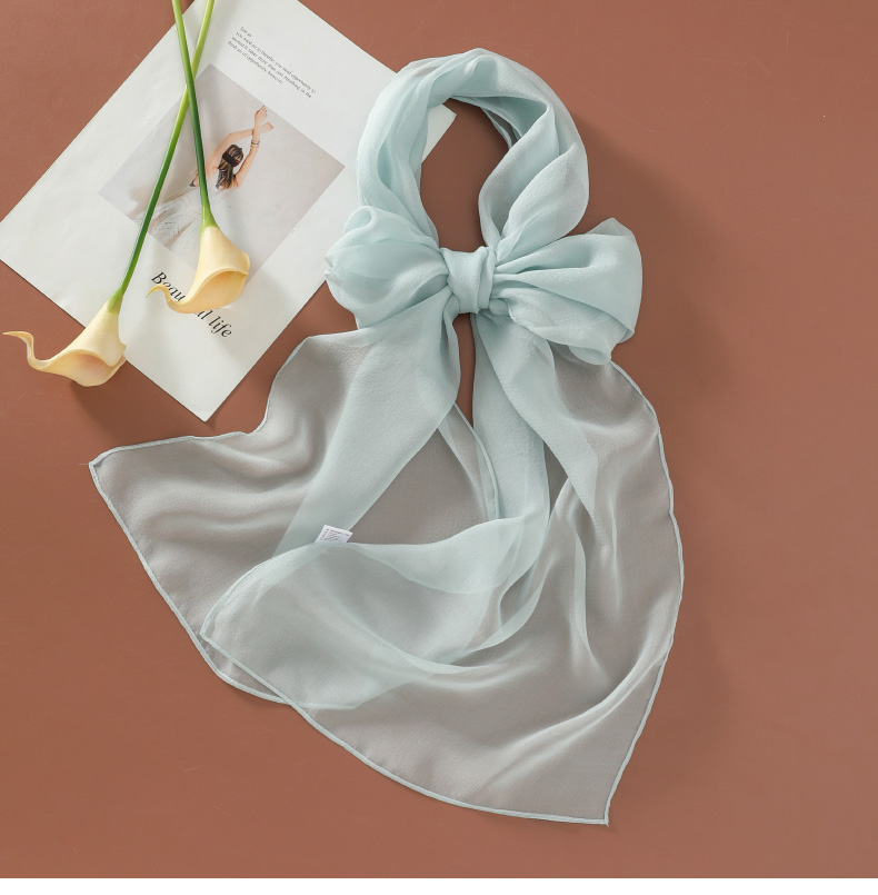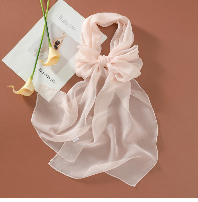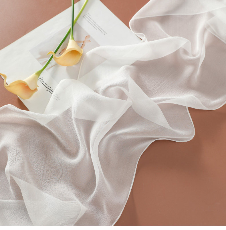 Шелковый летний универсальный тонкий белый шарф, с защитой шеи