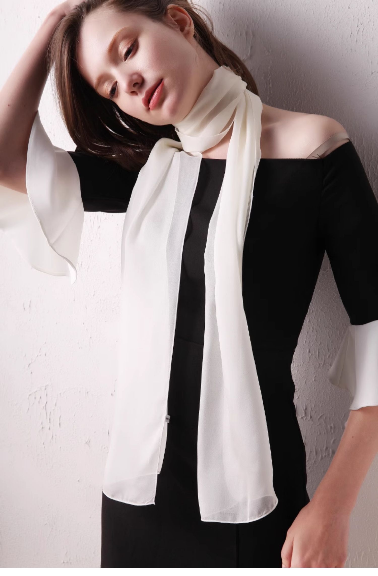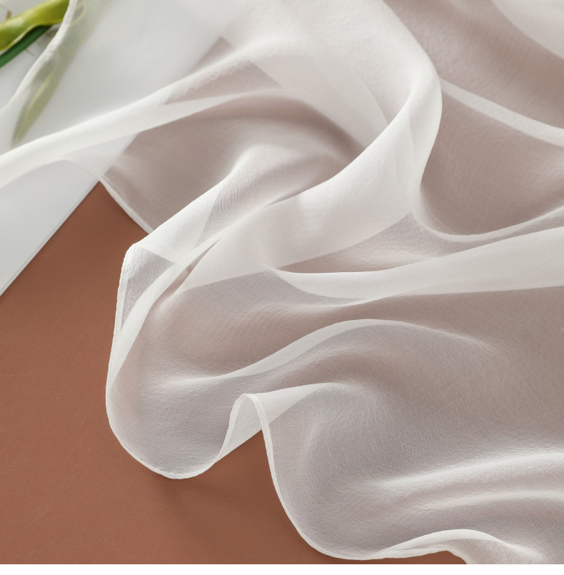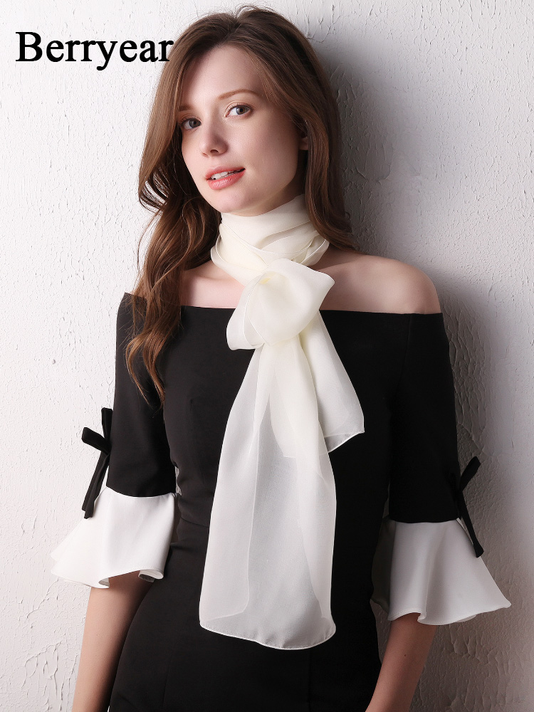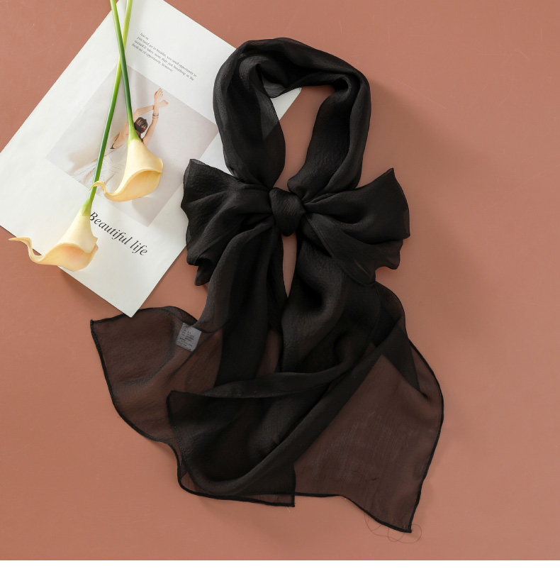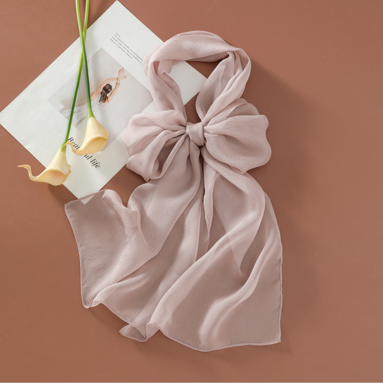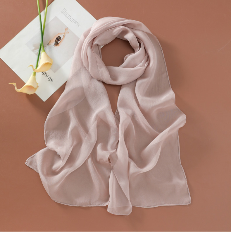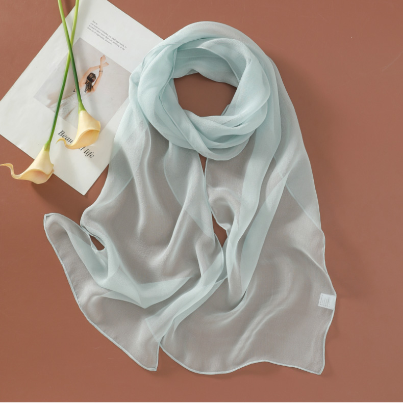 Шелковый летний универсальный тонкий белый шарф, с защитой шеи