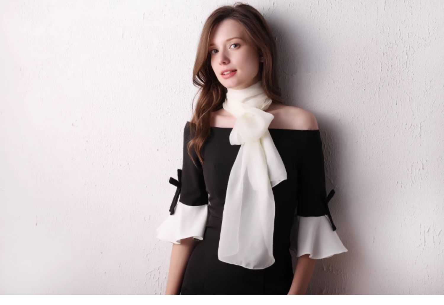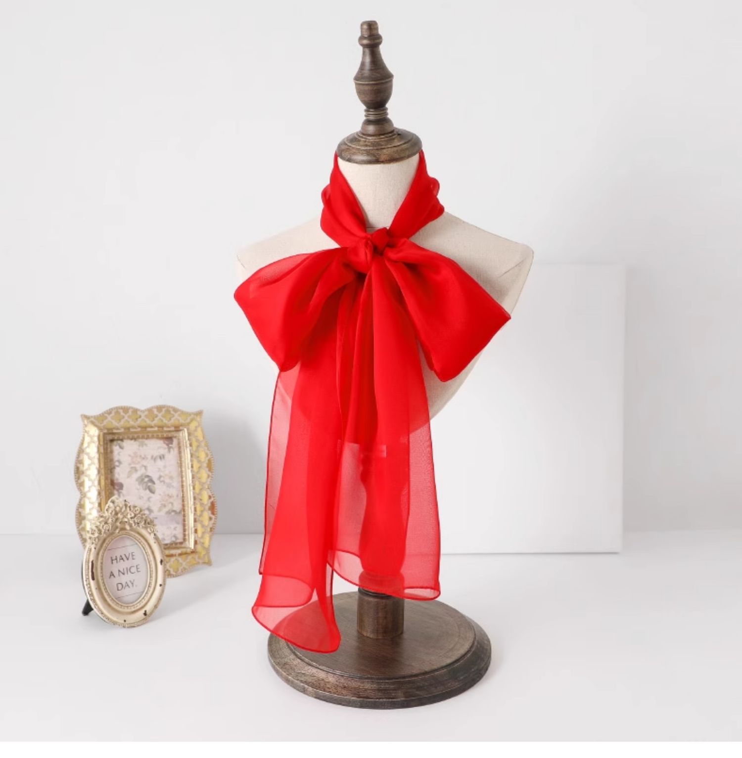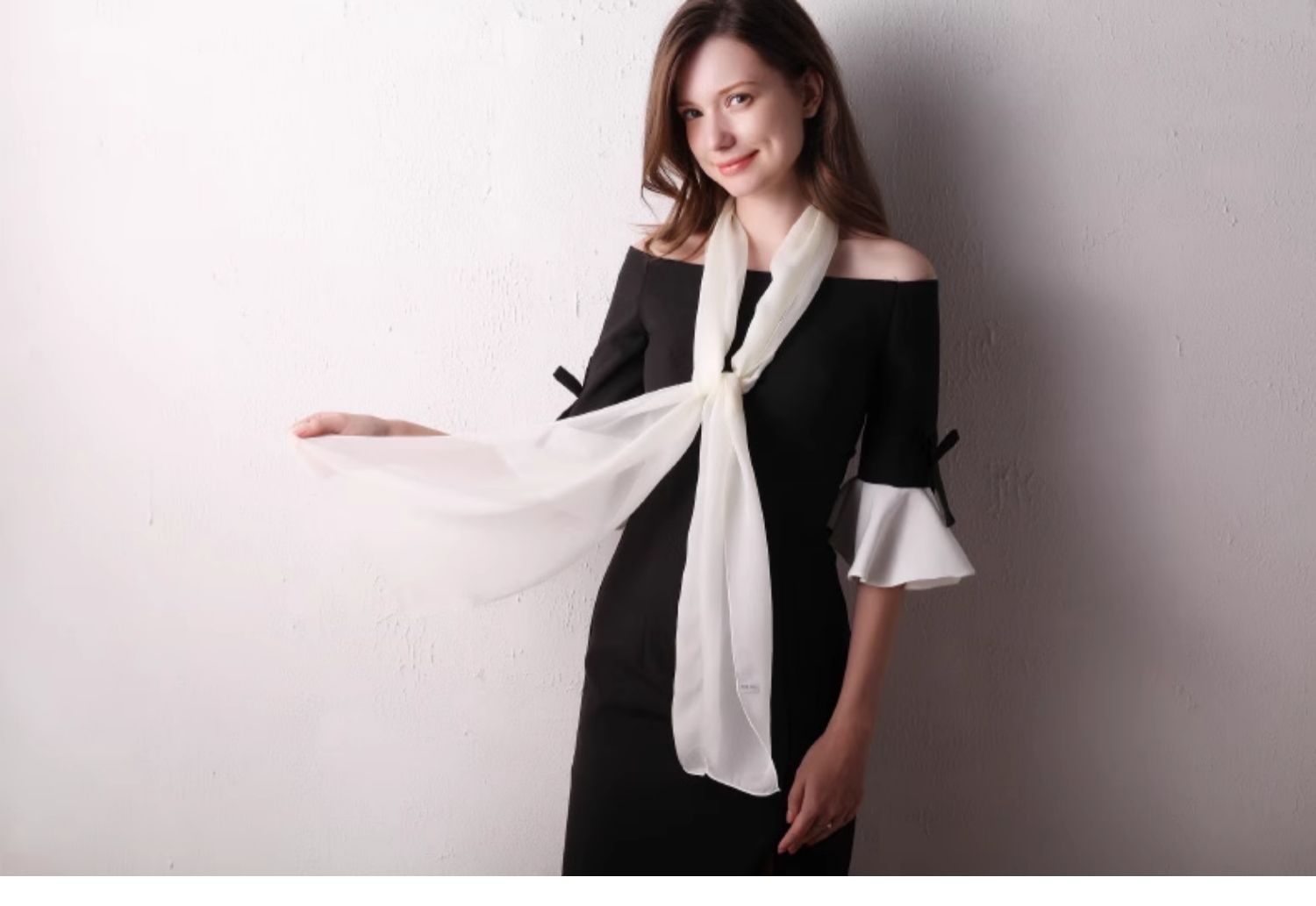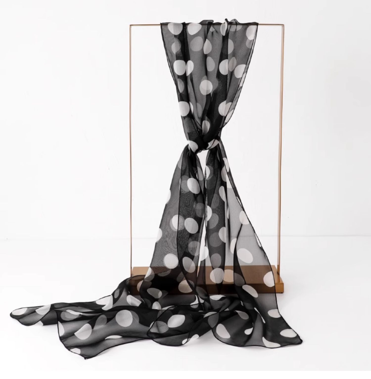 Шелковый летний универсальный тонкий белый шарф, с защитой шеи