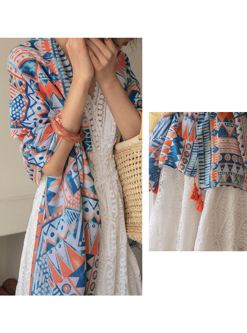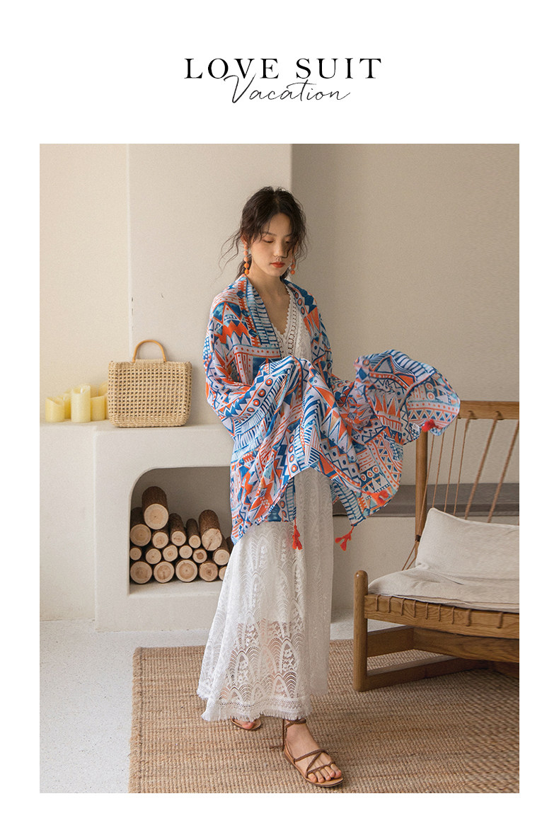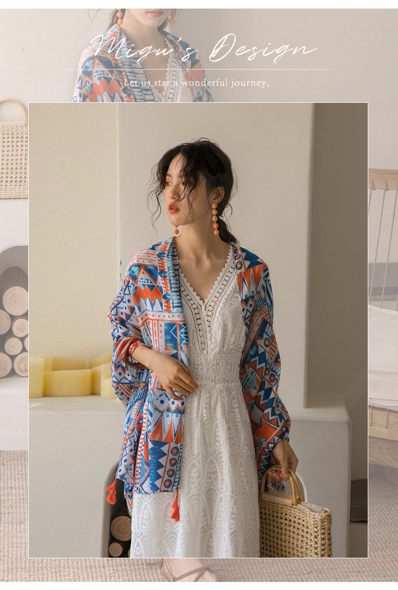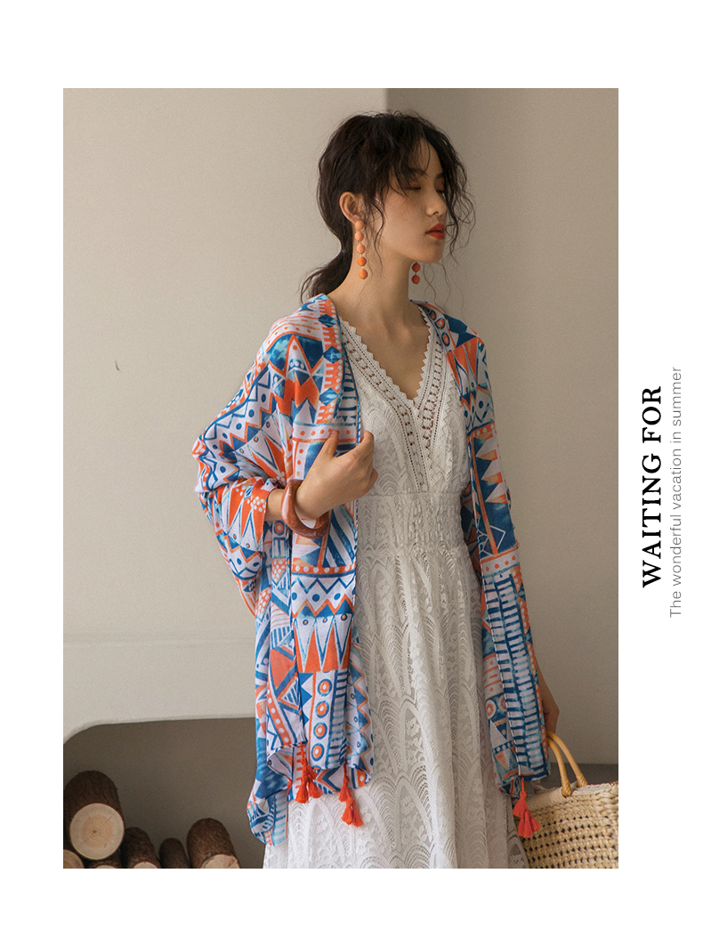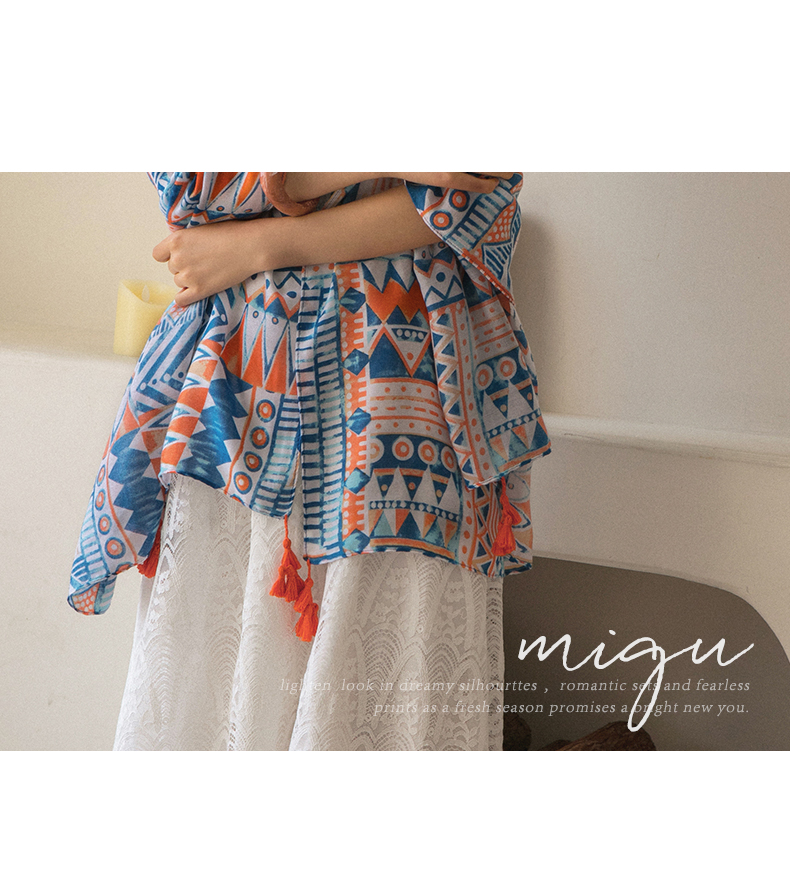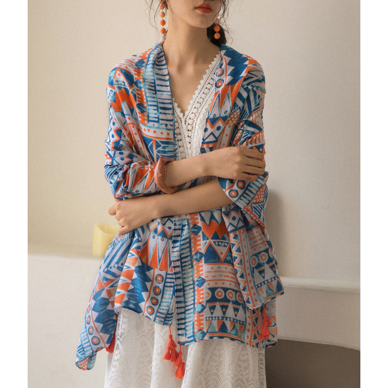 弥古 Этнический плащ, тонкая накидка, пляжный шарф, стиль бохо, защита от солнца