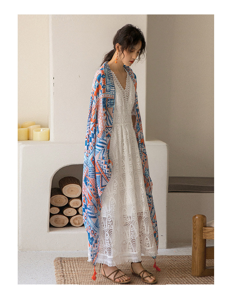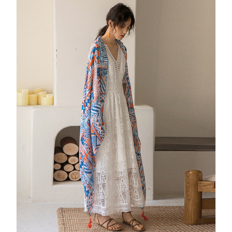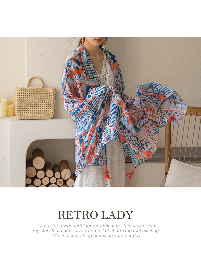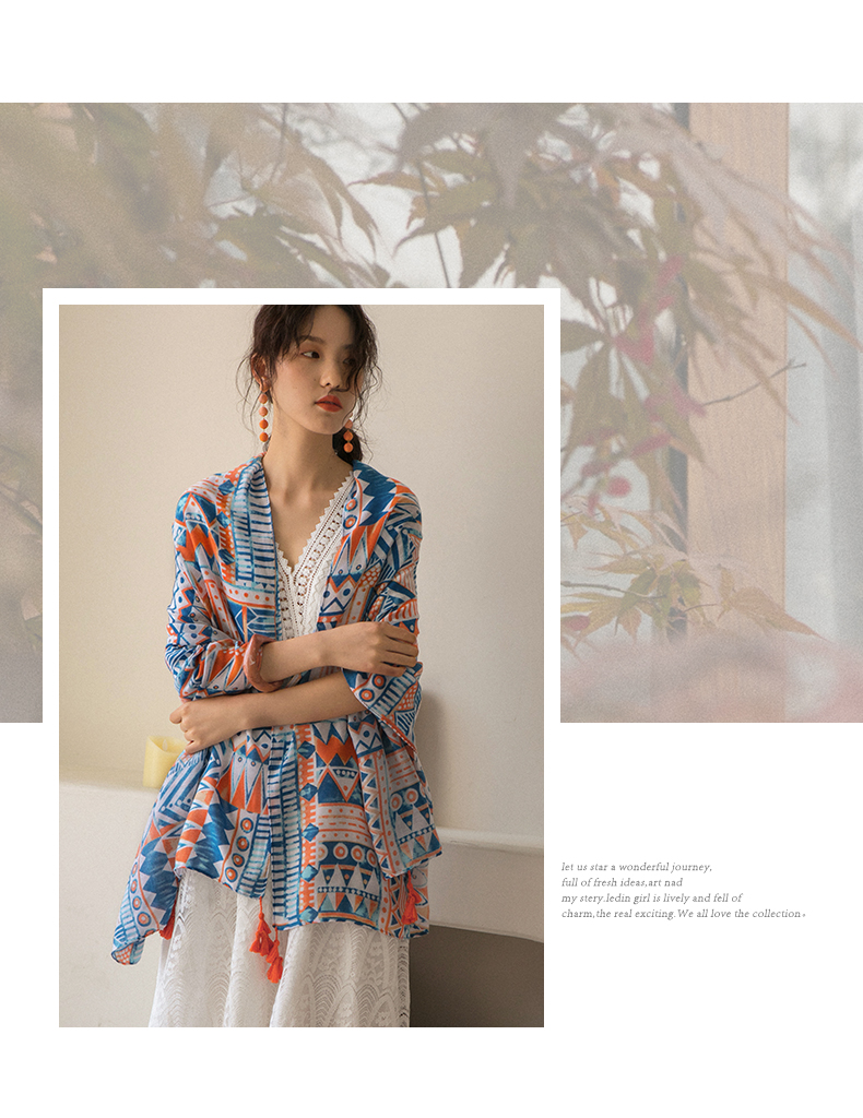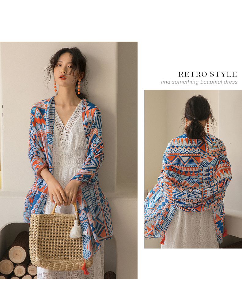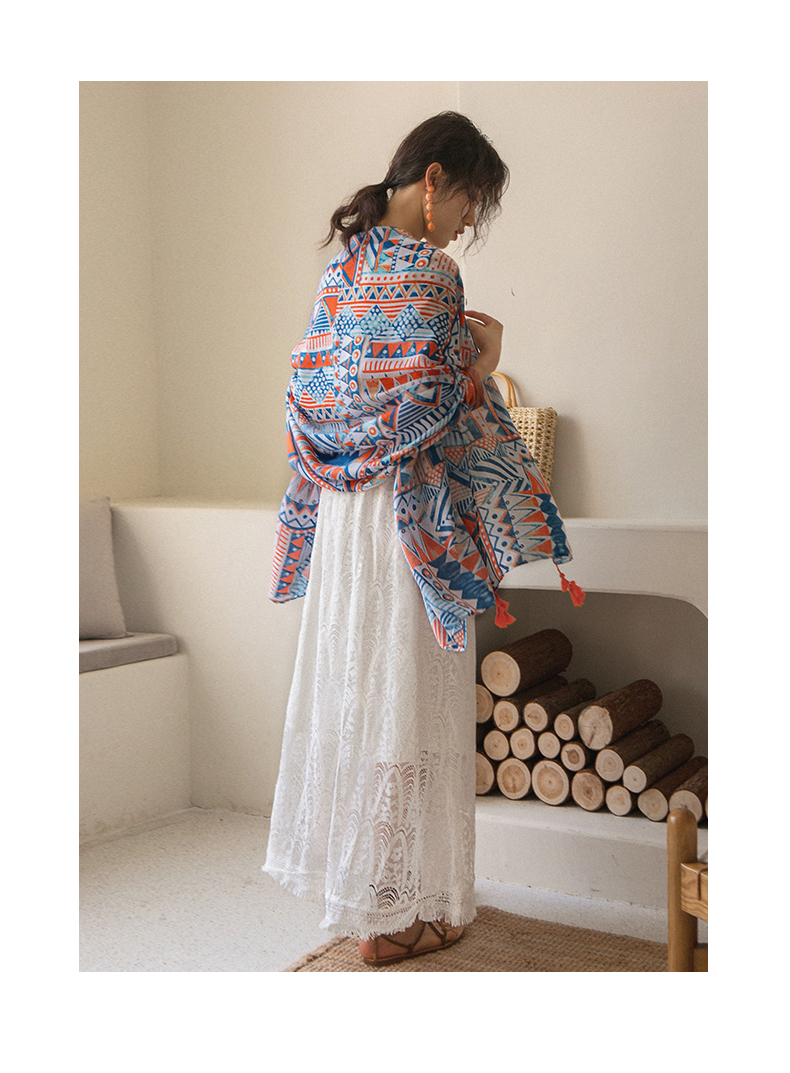 弥古 Этнический плащ, тонкая накидка, пляжный шарф, стиль бохо, защита от солнца