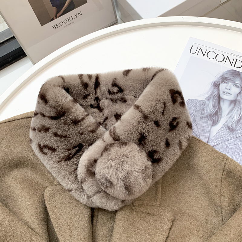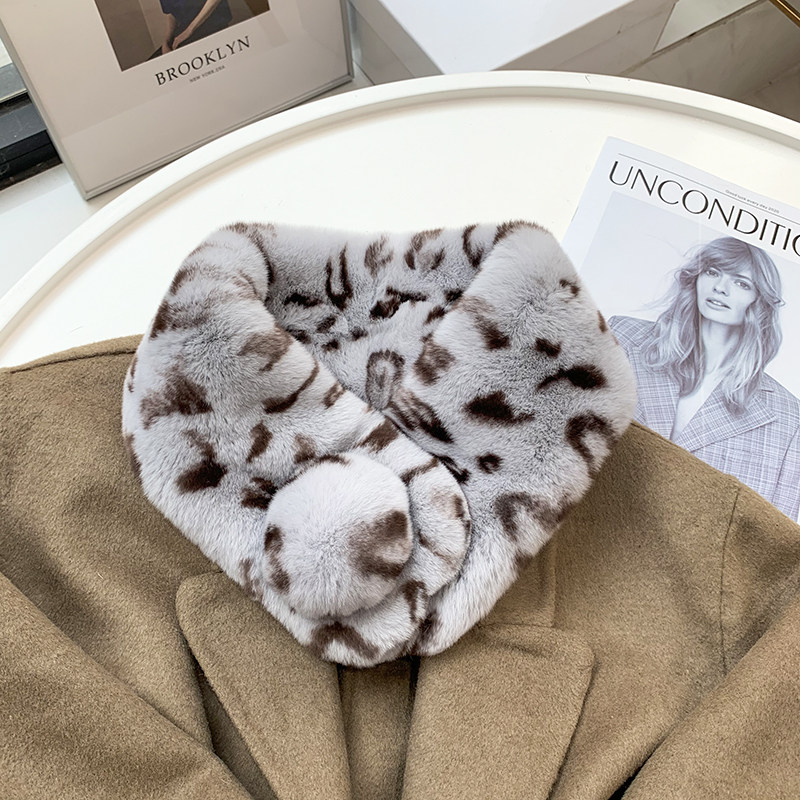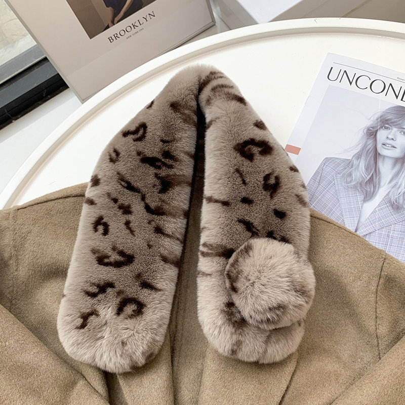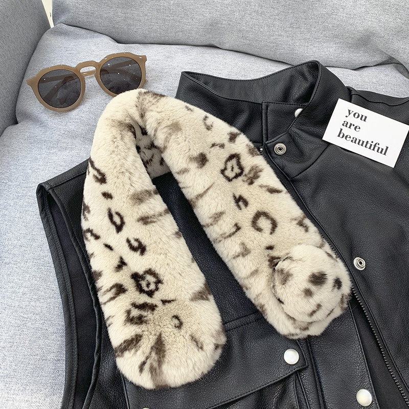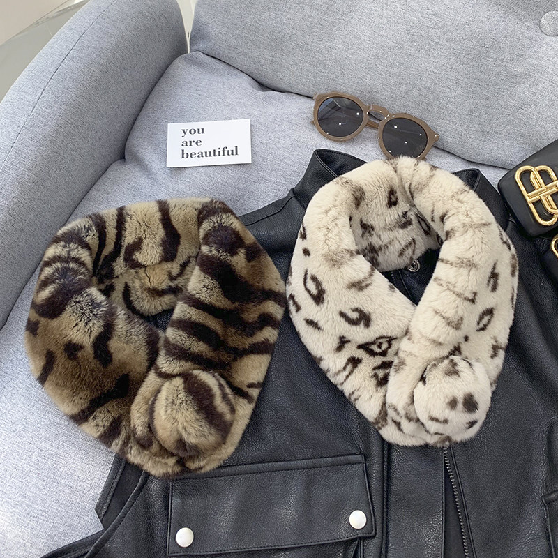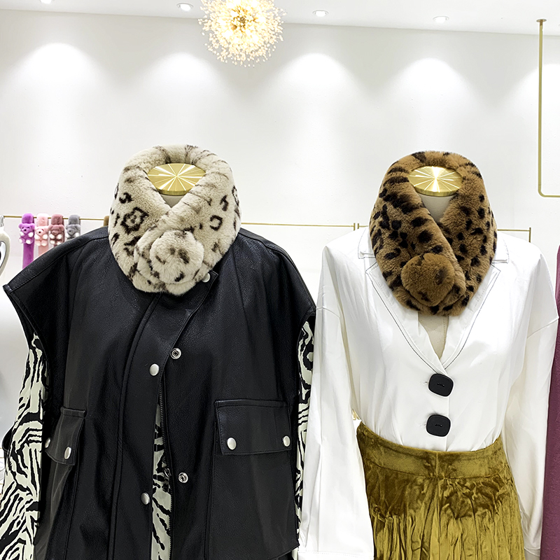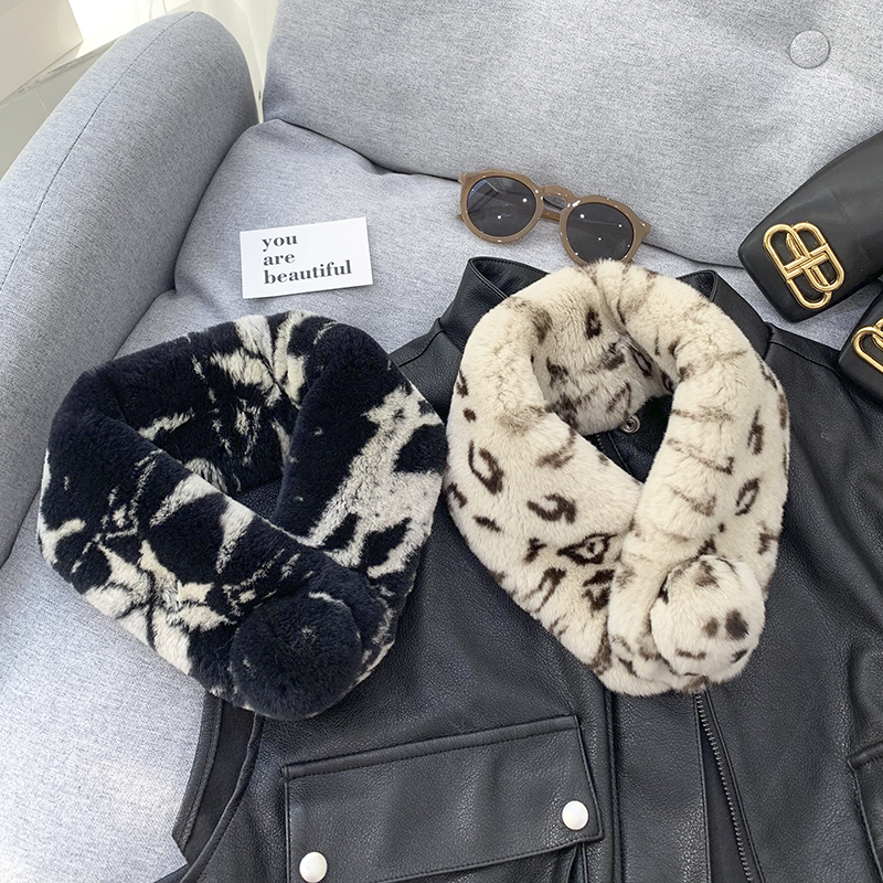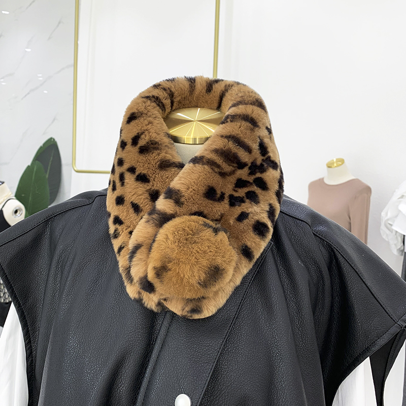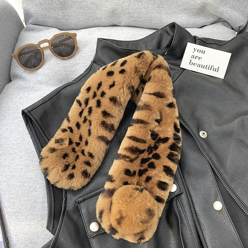 Зимний двойной сгущенный сгущенный кожаный выдр кроличьи шерстяные шерстяные шарфы леопардовые выдры, кролики сосают кожаный забор травяной шарф, шея девушка