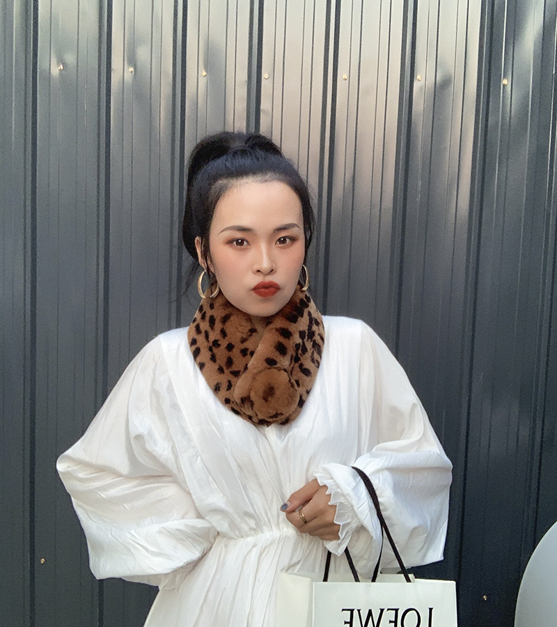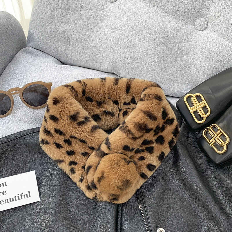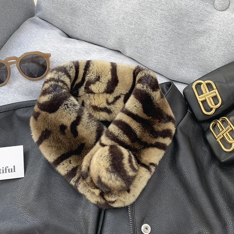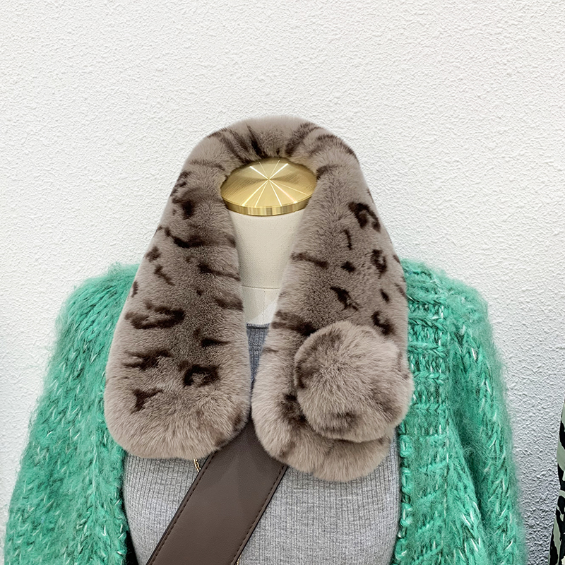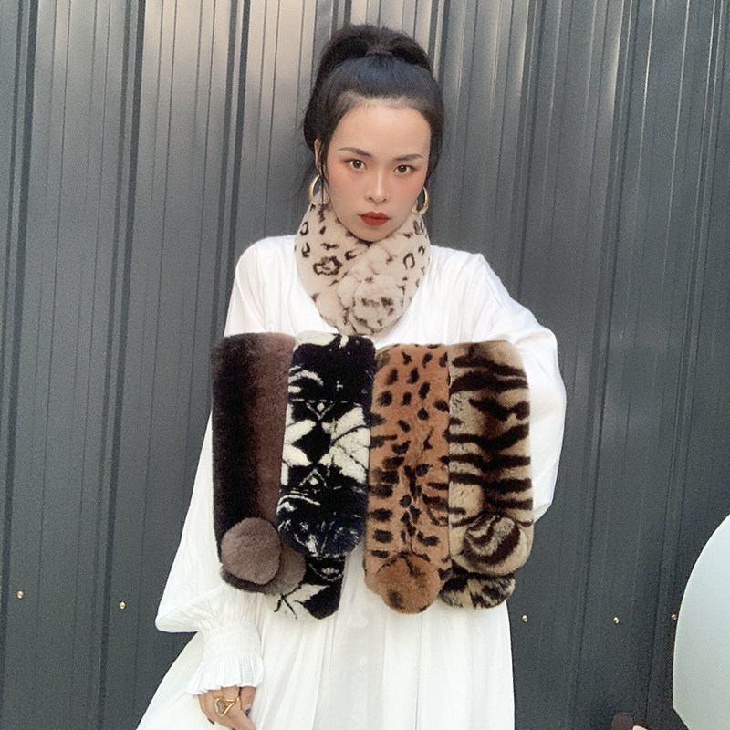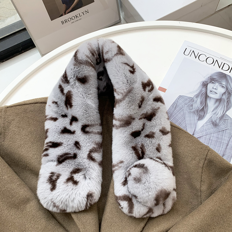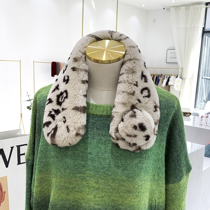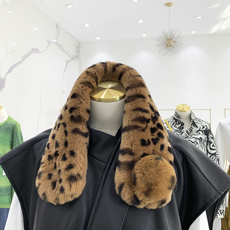 Зимний двойной сгущенный сгущенный кожаный выдр кроличьи шерстяные шерстяные шарфы леопардовые выдры, кролики сосают кожаный забор травяной шарф, шея девушка