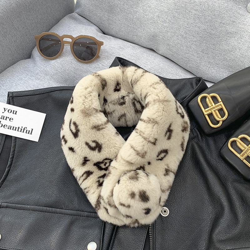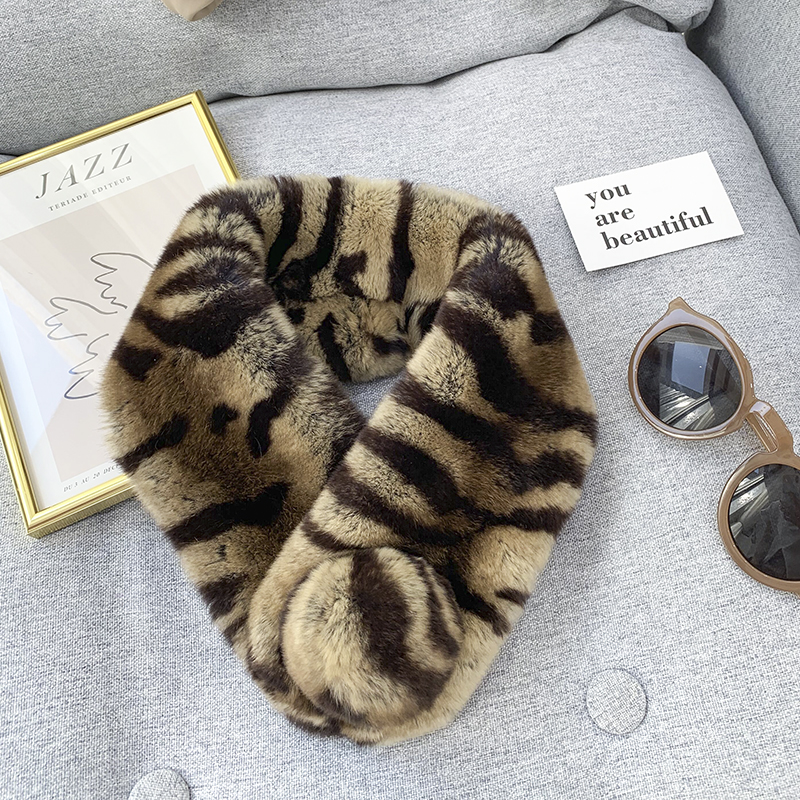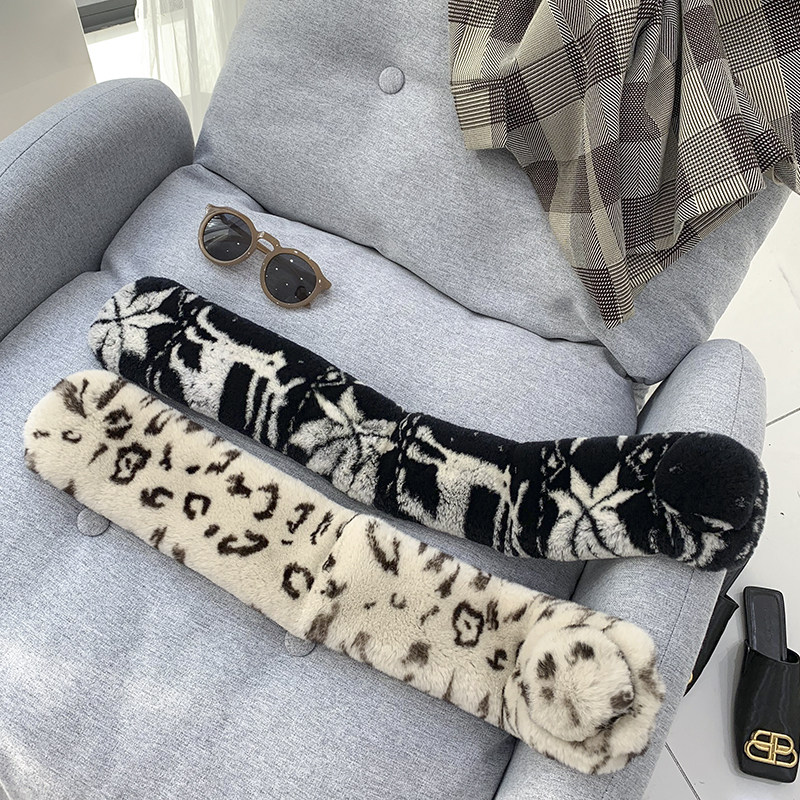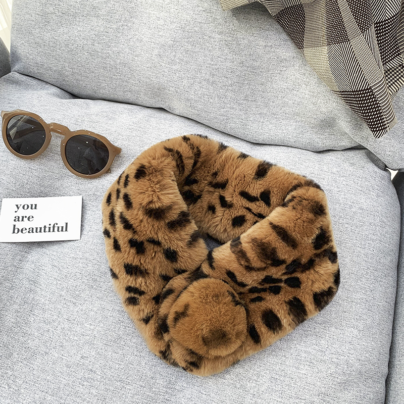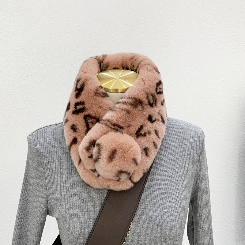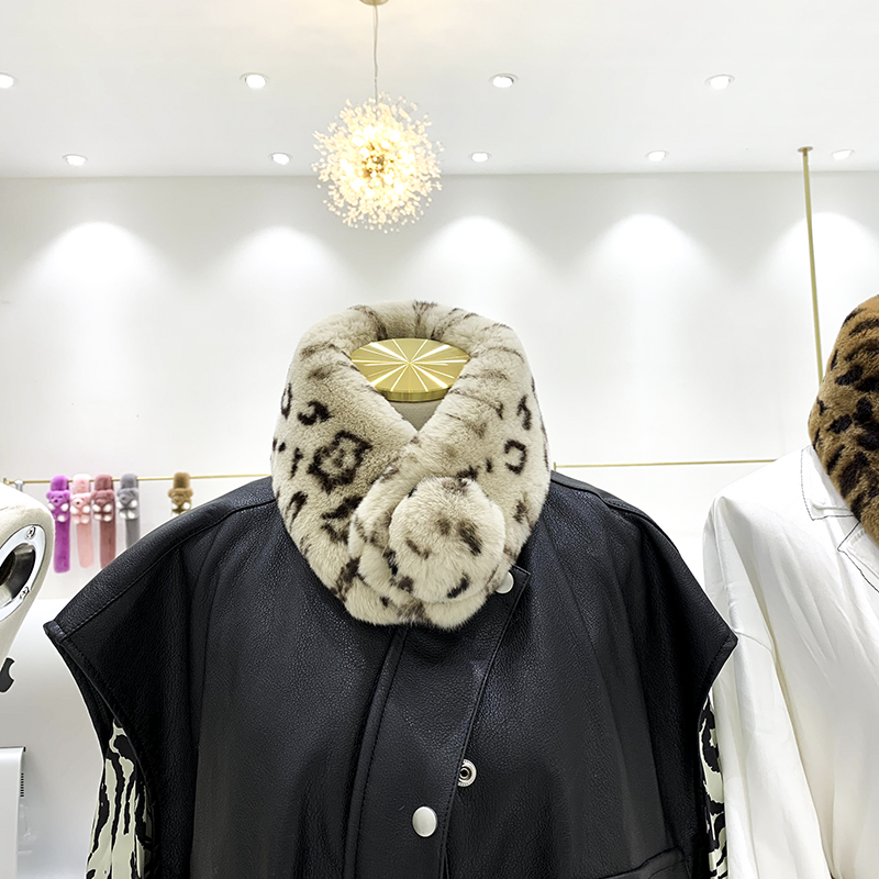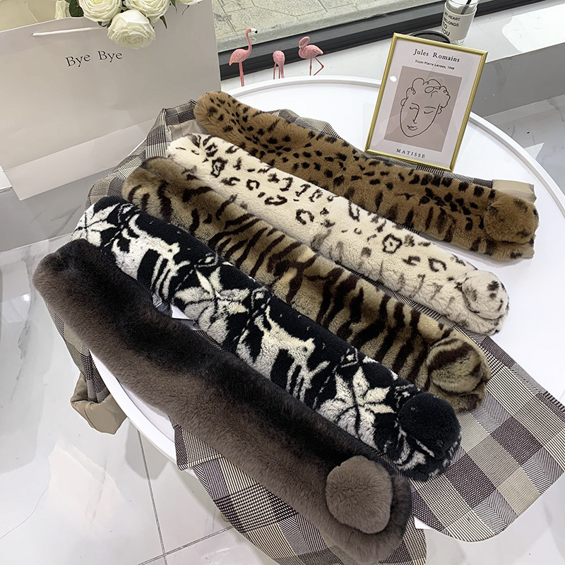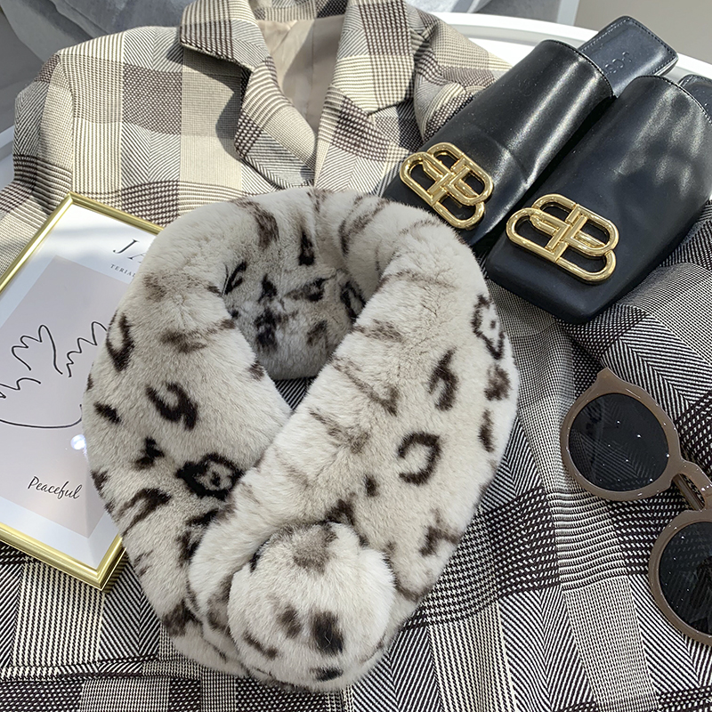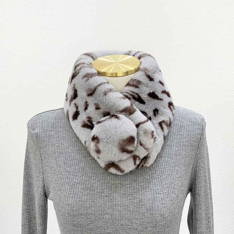 Зимний двойной сгущенный сгущенный кожаный выдр кроличьи шерстяные шерстяные шарфы леопардовые выдры, кролики сосают кожаный забор травяной шарф, шея девушка