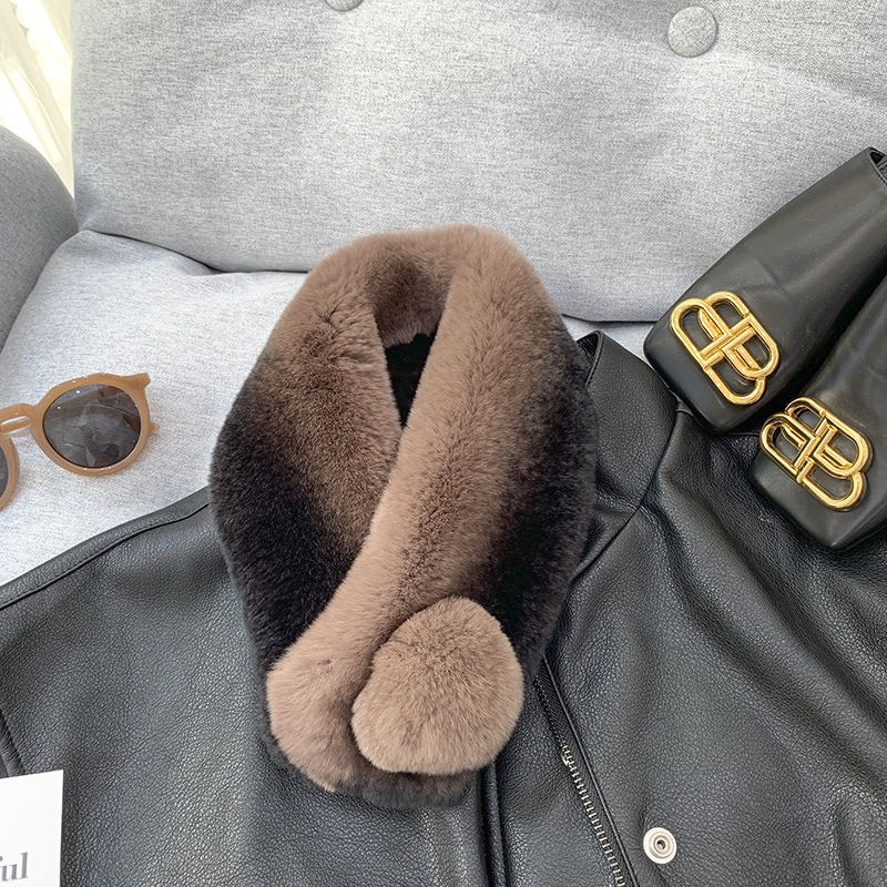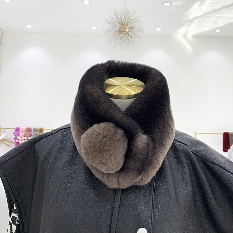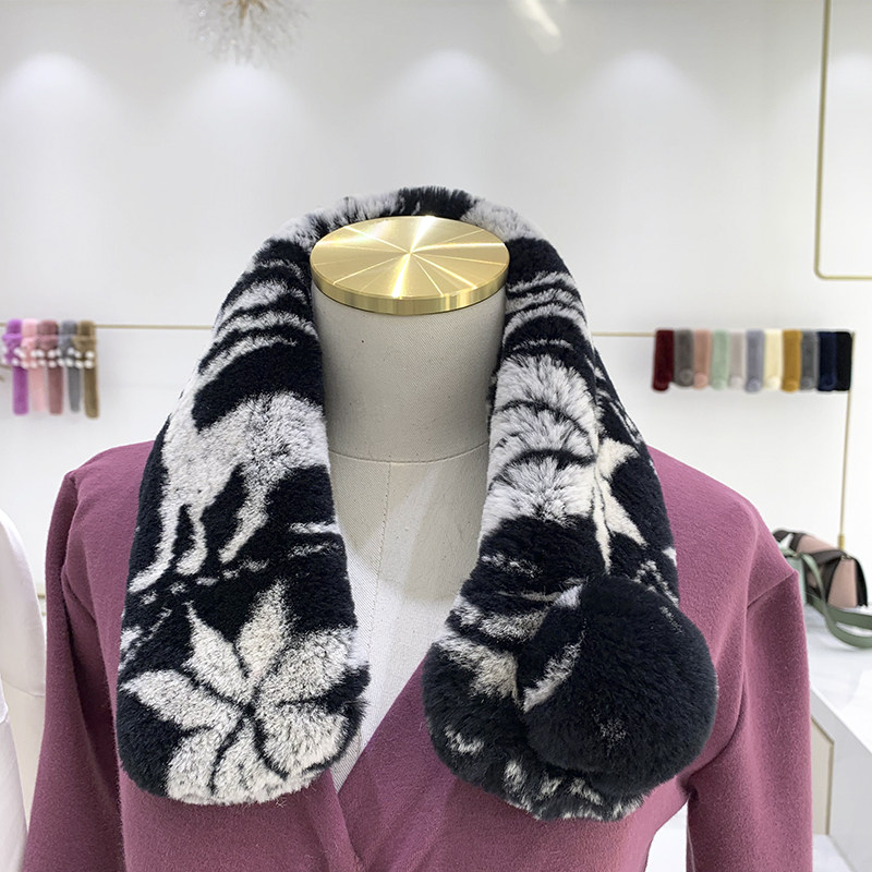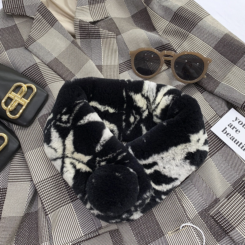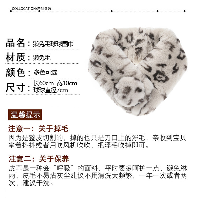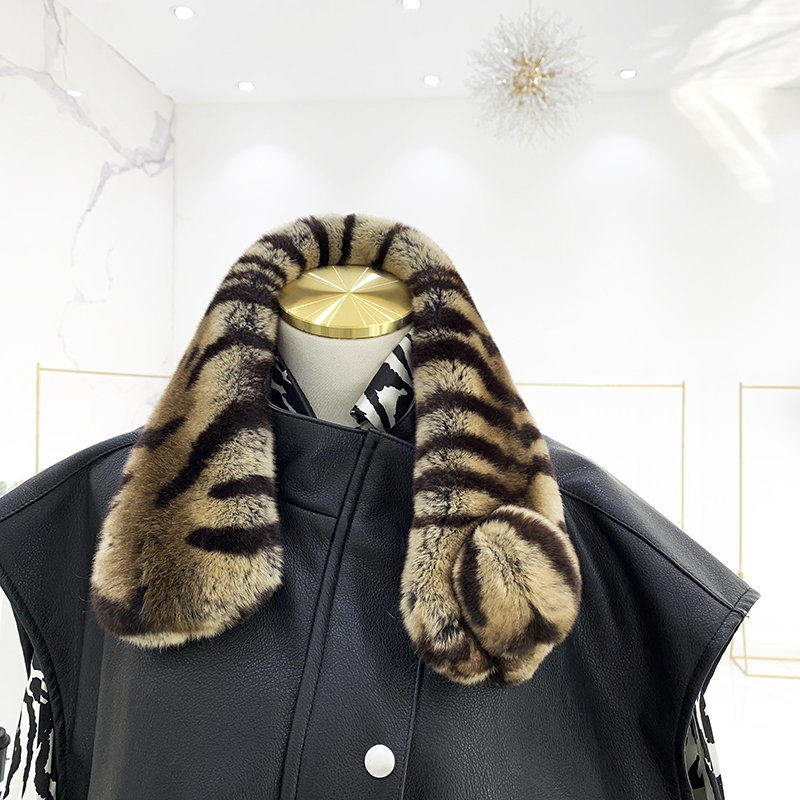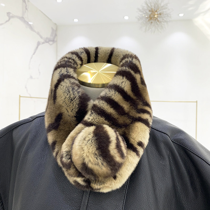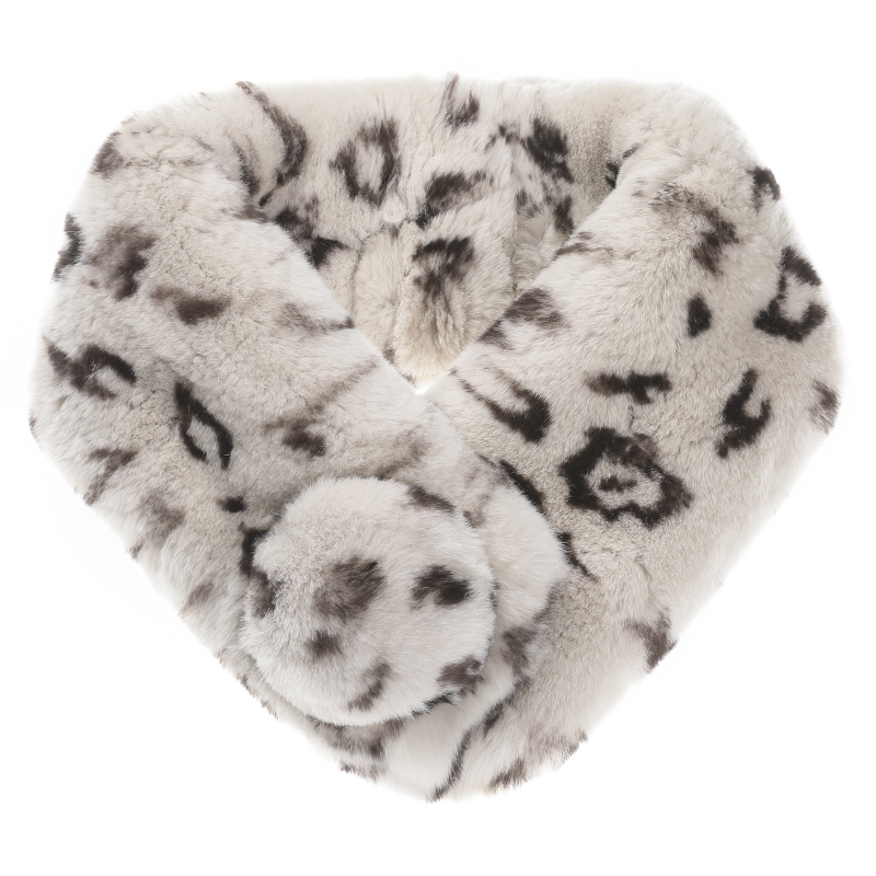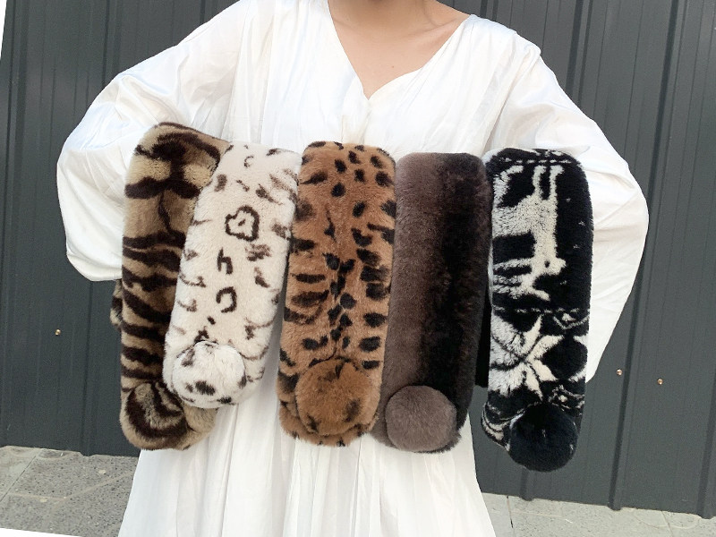 Зимний двойной сгущенный сгущенный кожаный выдр кроличьи шерстяные шерстяные шарфы леопардовые выдры, кролики сосают кожаный забор травяной шарф, шея девушка