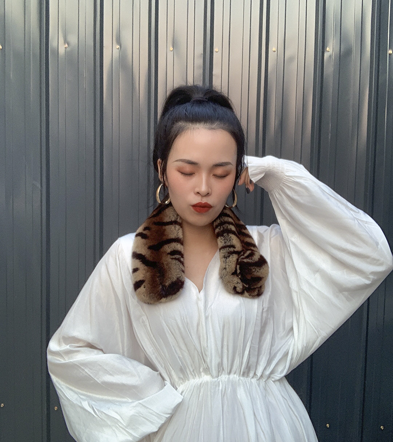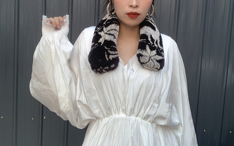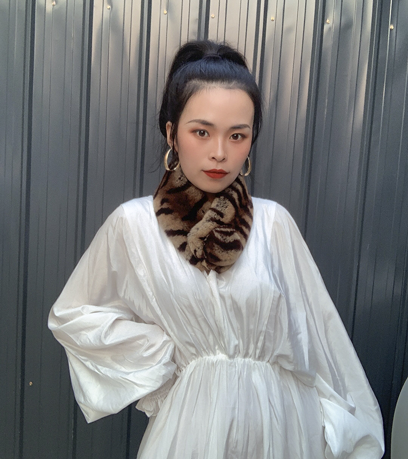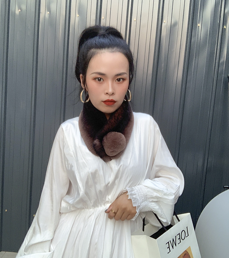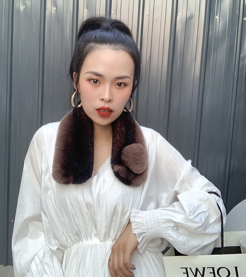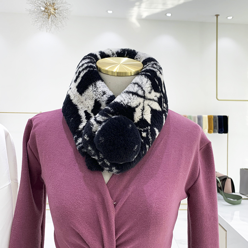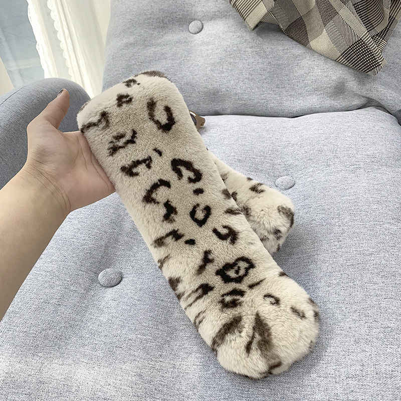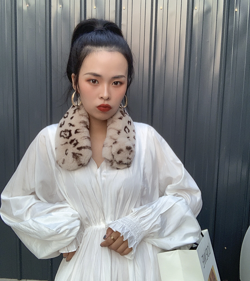 Зимний двойной сгущенный сгущенный кожаный выдр кроличьи шерстяные шерстяные шарфы леопардовые выдры, кролики сосают кожаный забор травяной шарф, шея девушка