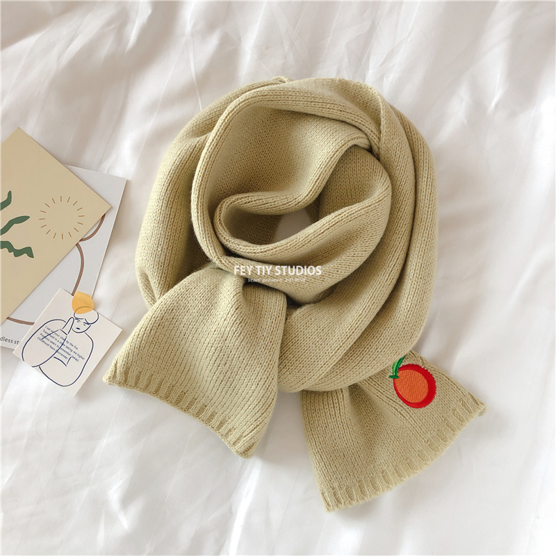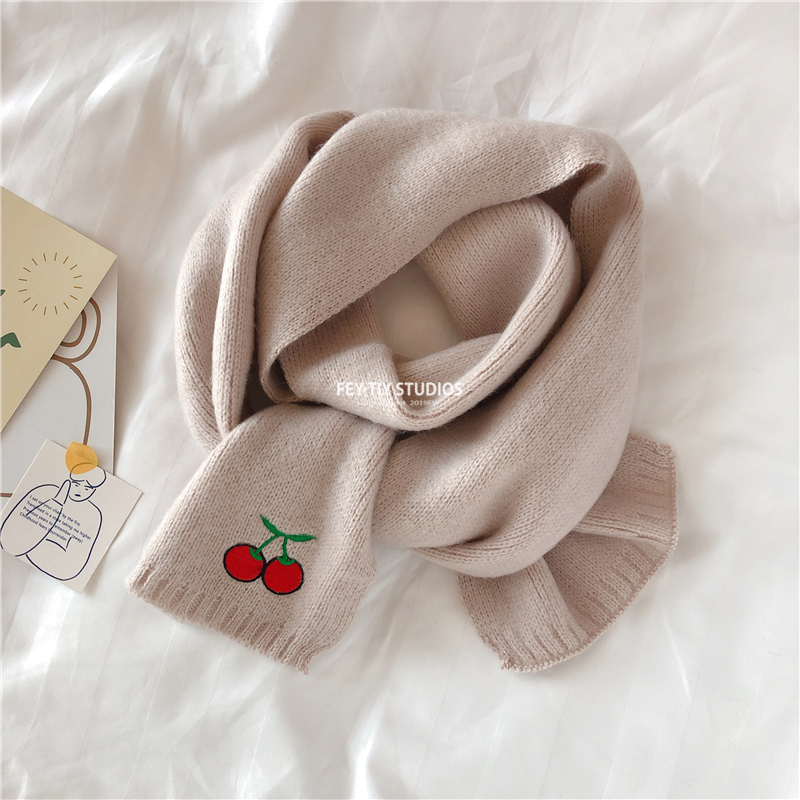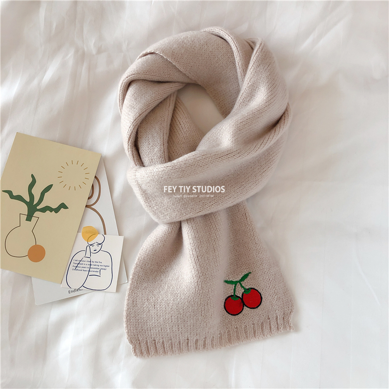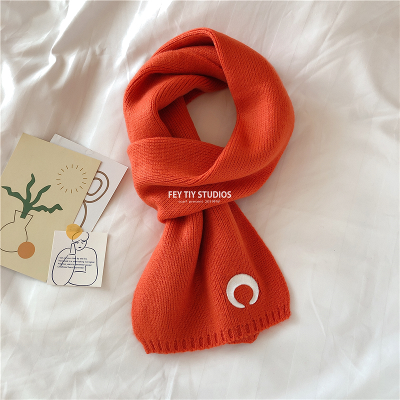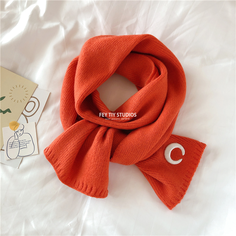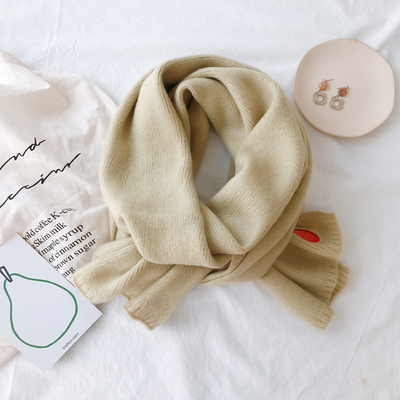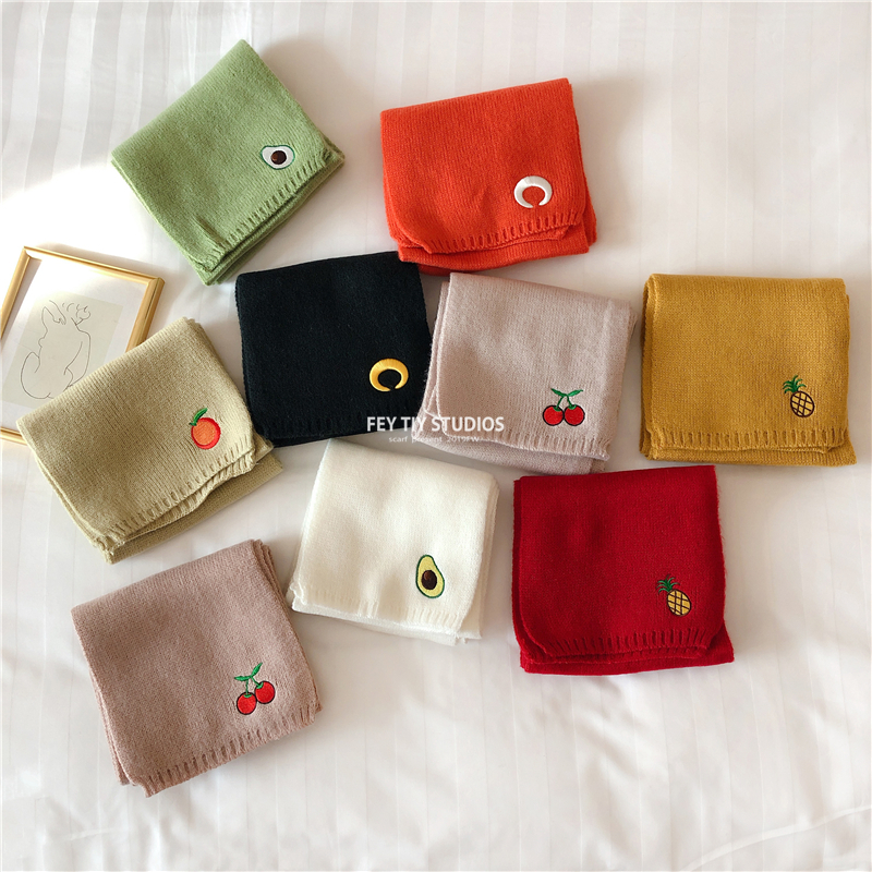 Милый трикотажный удерживающий тепло шарф, в корейском стиле, с вышивкой, семейный стиль