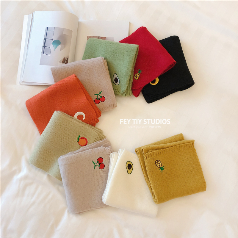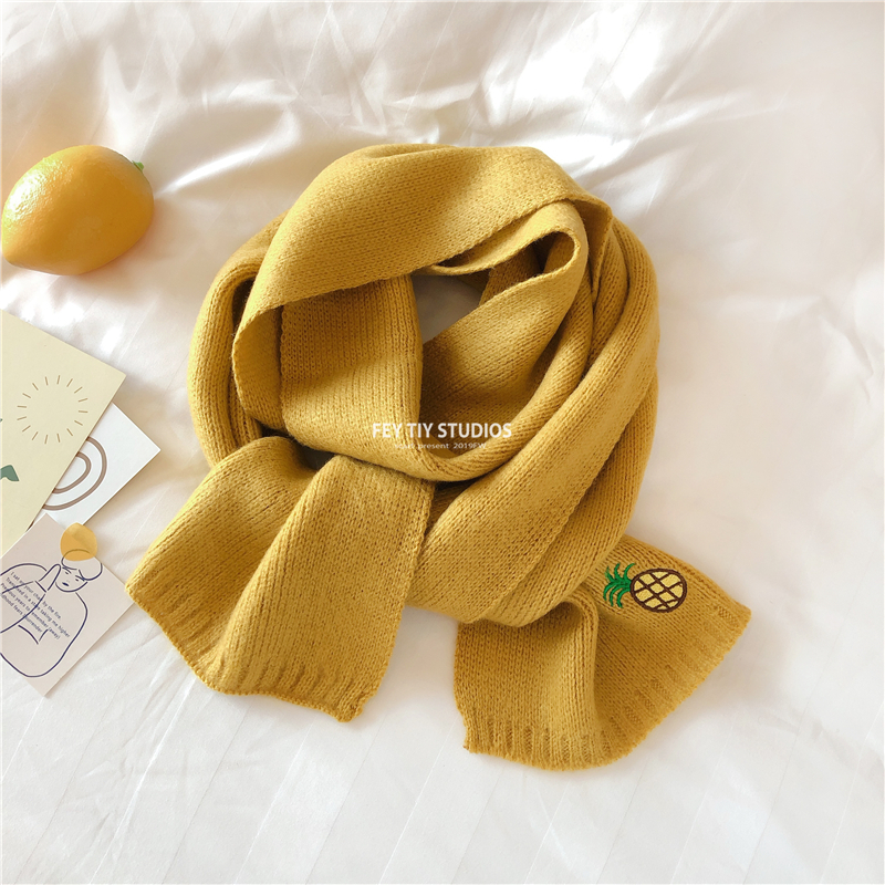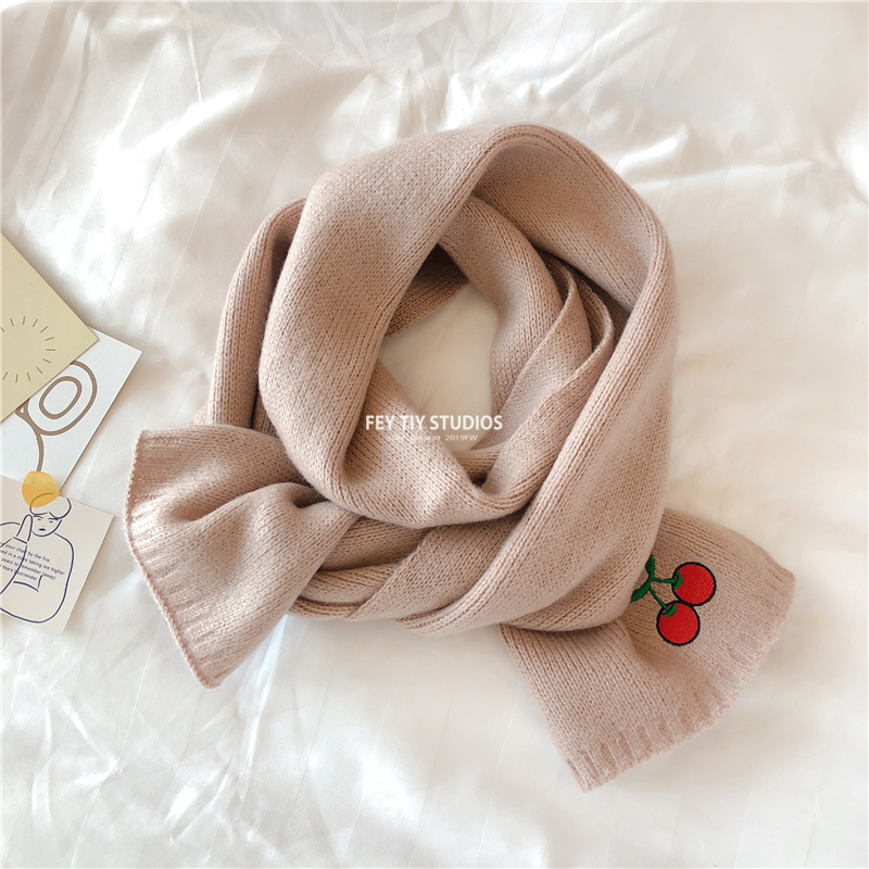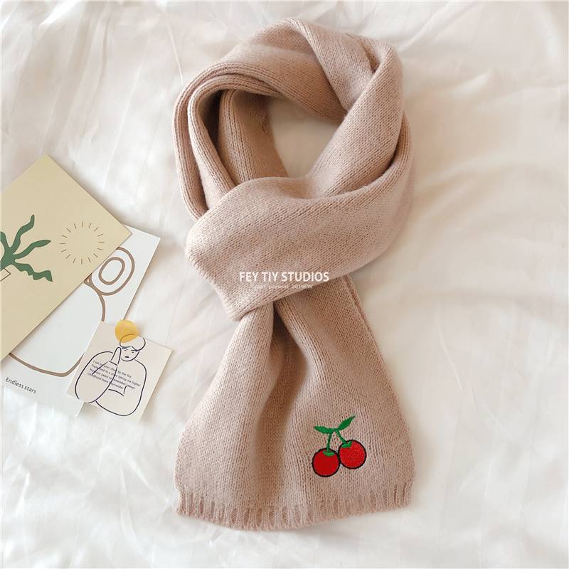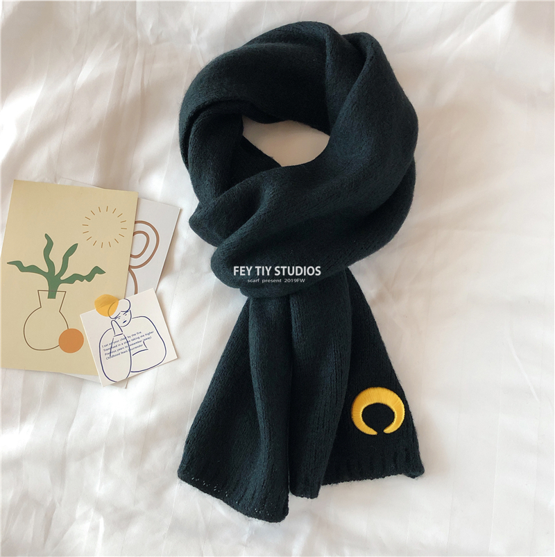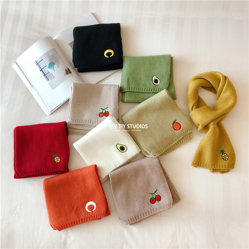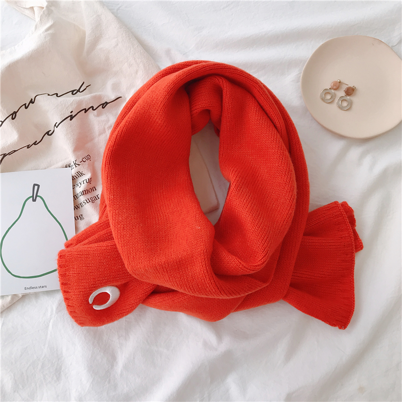 Милый трикотажный удерживающий тепло шарф, в корейском стиле, с вышивкой, семейный стиль