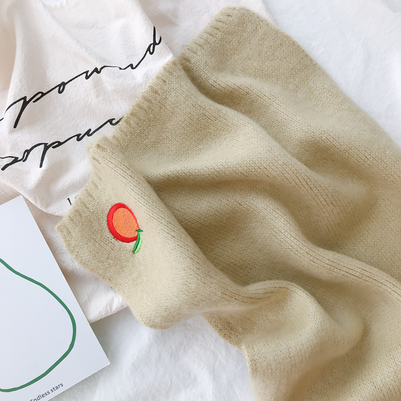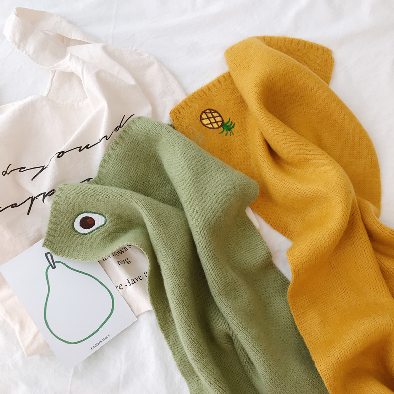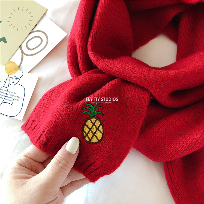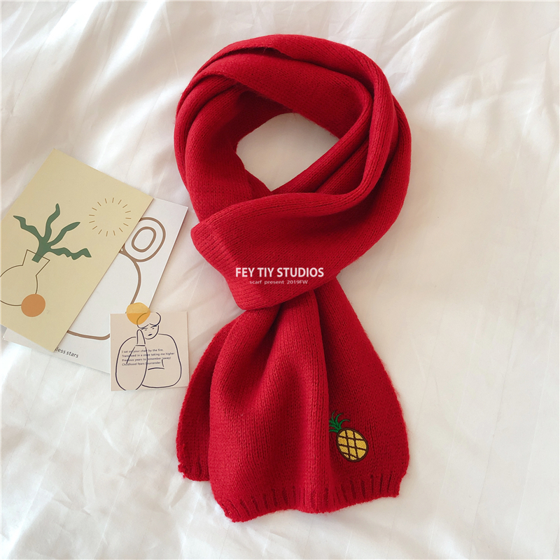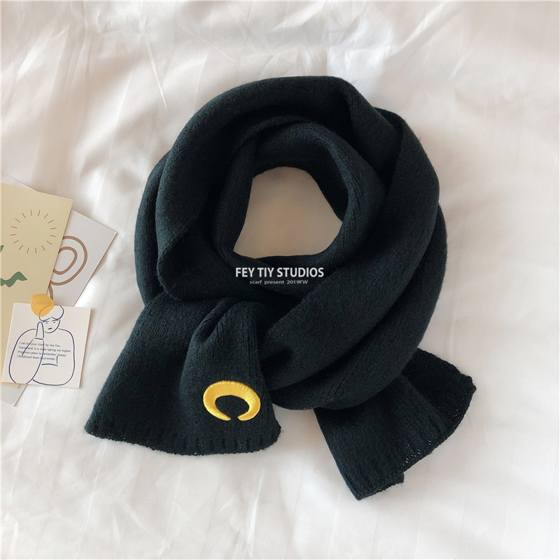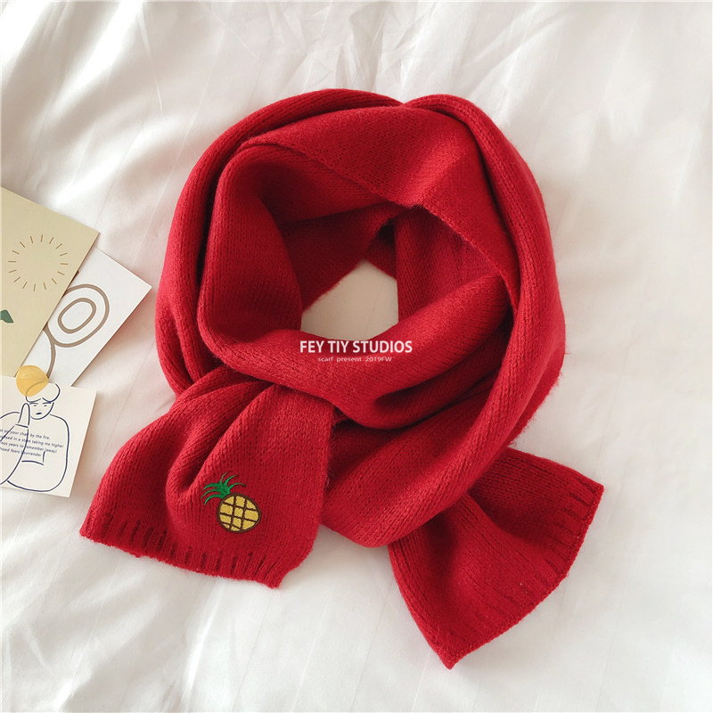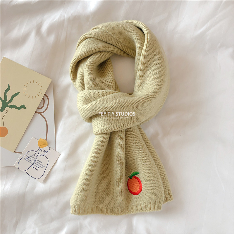Милый трикотажный удерживающий тепло шарф, в корейском стиле, с вышивкой, семейный стиль