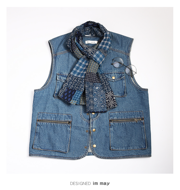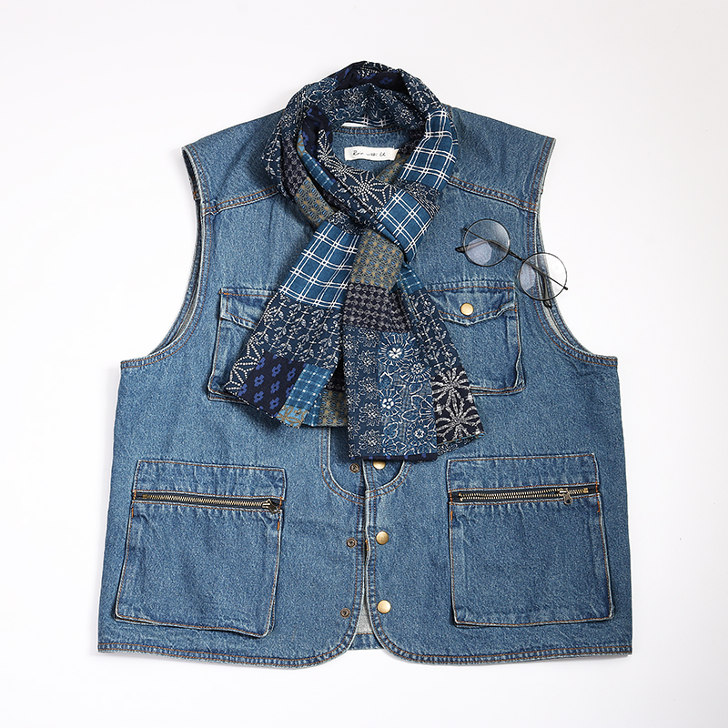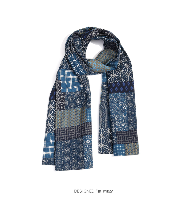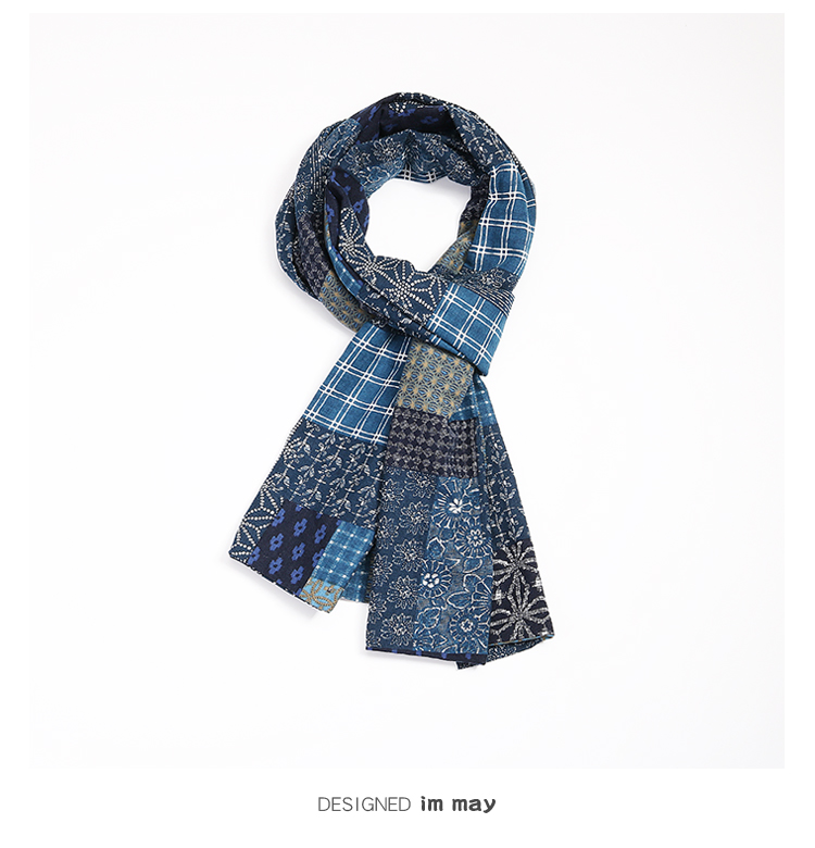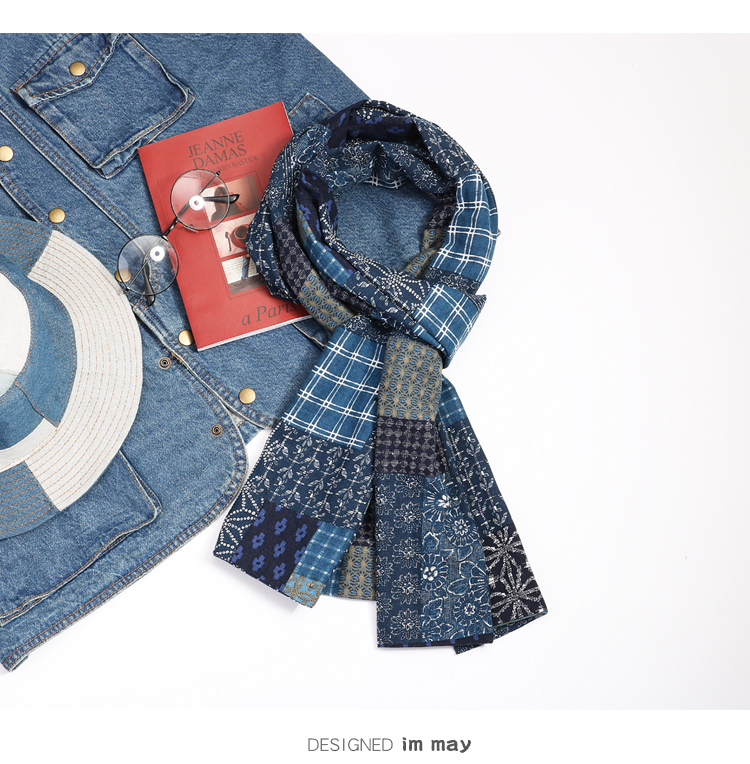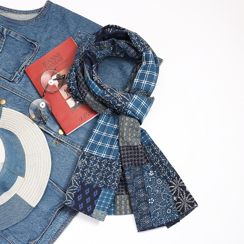 Синий краситель индигобл -это дикий ретро и старый весенний и осенний шарф женский хлопок и льняная литературная платка мужчина не -висвим
