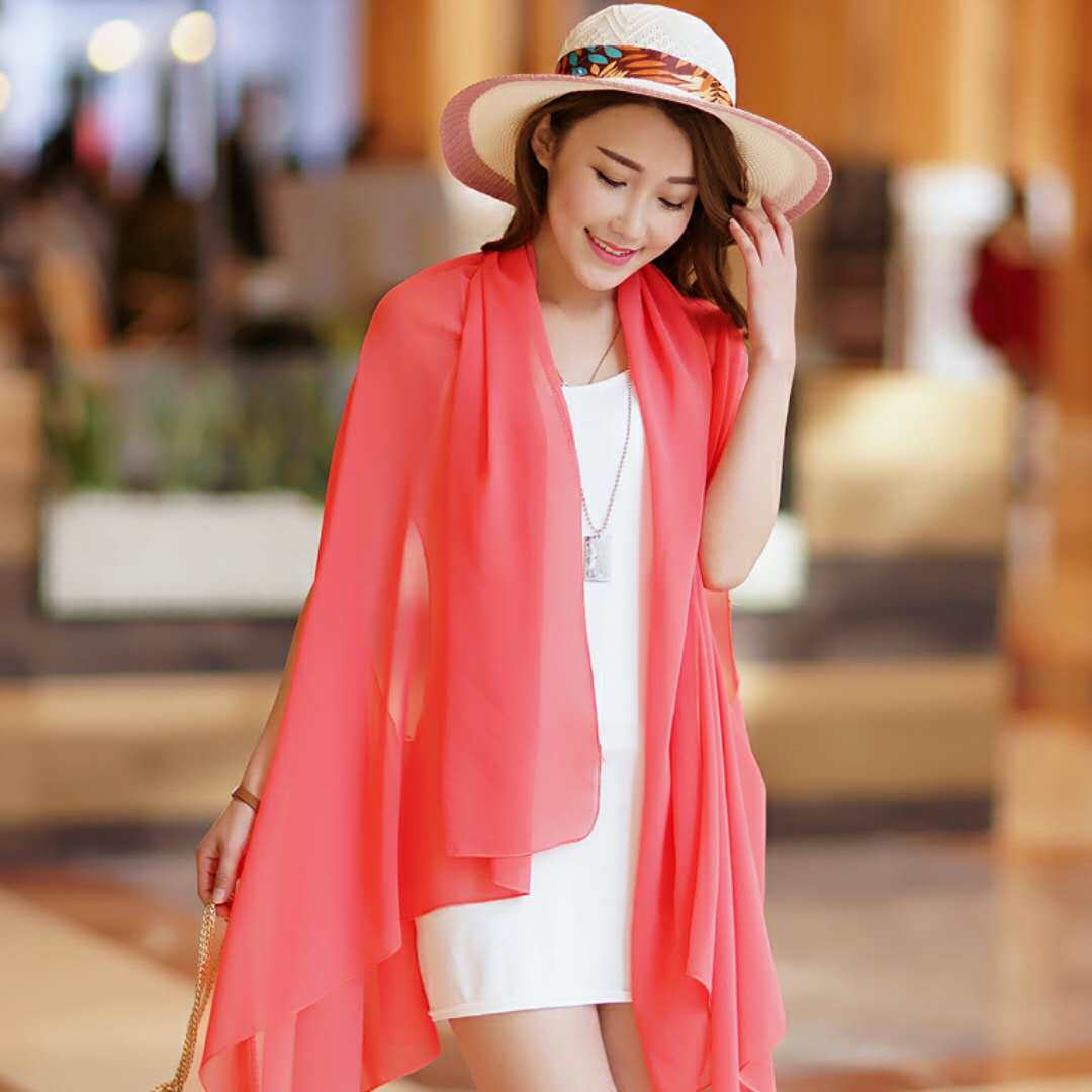 Демисезонный универсальный шифоновый шелковый большой шарф, пляжная шифоновая накидка, защита от солнца, для подиума